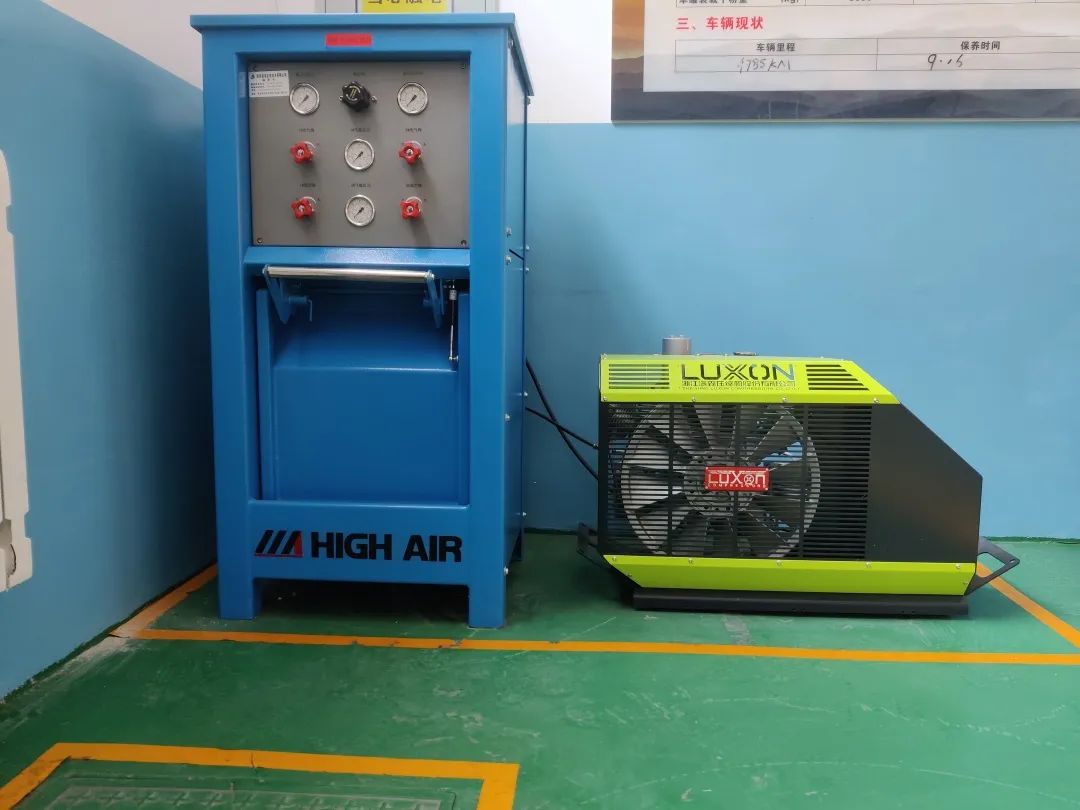 按照《工業空氣呼吸器安全使用維護管理》(AQ/T6110--2012)5.3.1規定,空氣呼吸器每月至少檢查一次,檢查過程中需檢查供氣閥性能,開啟后氣瓶內部壓力會降低,無法達到高于額定壓力的90%要求。每月檢查后氣瓶就需要送至指定地點充裝,且分批次送裝后,留下的正壓式空氣呼吸器雖能滿足應急使用,但總量的減少意味著應急救援工作整體救援時間變短,遇到長周期,高強度應急救援工作,只能依仗外部救援。針對此情況,能源公司HSE總監將空呼充裝站建設工作作為應急救援能力提升專項工作部署,帶頭查資料、看型號,最終選定215L高壓氣體充裝泵作為空呼充裝站主泵,此泵一次可充裝兩具6.8L空呼氣瓶,充裝時間15分鐘,全力啟動每小時可為8具6.8L空呼氣瓶充滿高壓空氣。按照一次應急救援佩戴24具空呼計算,空呼充裝站的建成可將應急救援的持續時間延長至5小時。