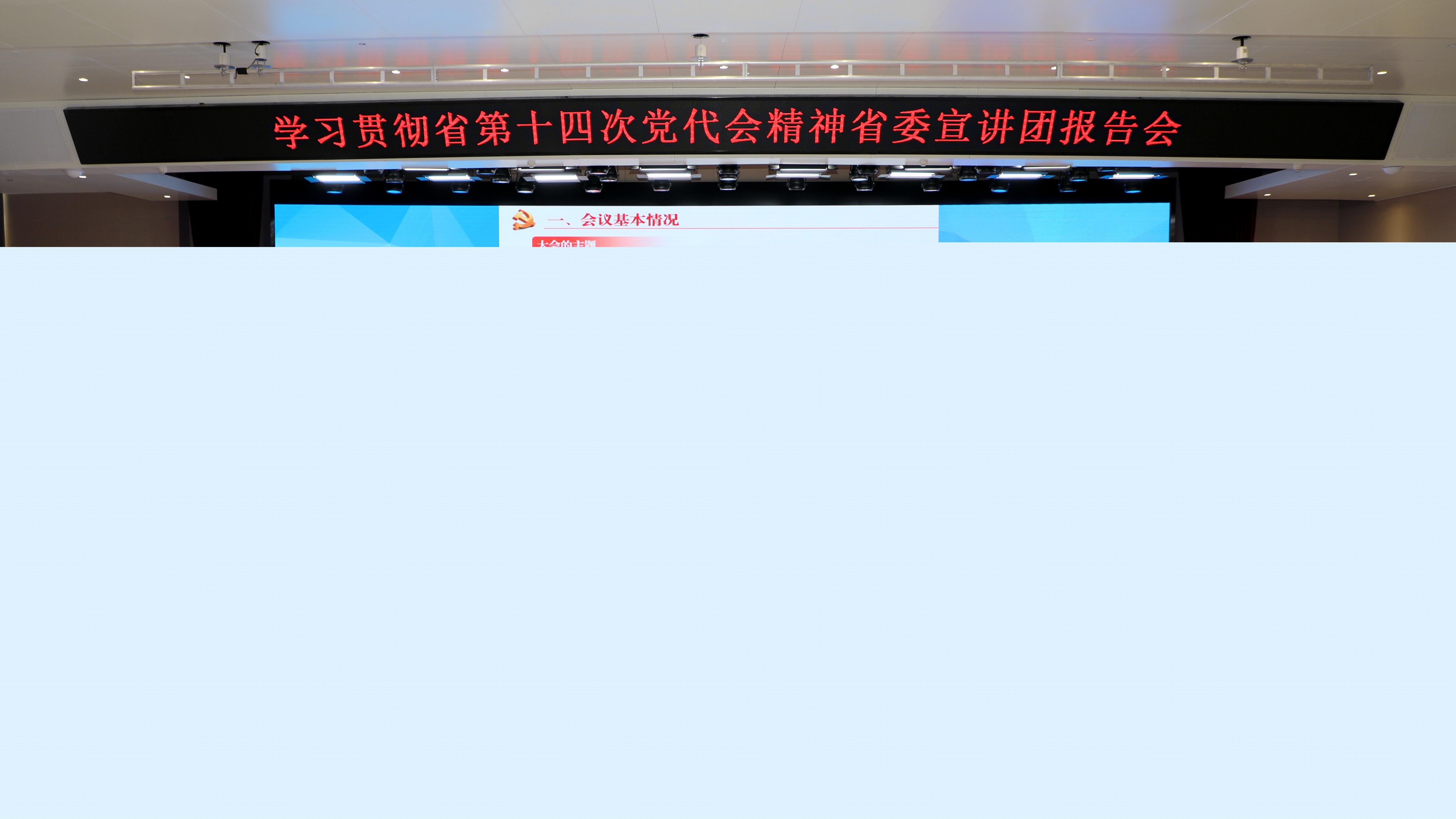 報告會上,省委宣講團成員、省國資委黨委書記劉斌從會議基本情況、深刻認識過去五年的工作成效、深刻認識今后五年的奮斗目標和總體要求、深刻認識今后五年的主要任務、認真學習宣傳貫徹省第十四次黨代會精神五個方面,對省第十四次黨代會精神進行了全面系統的闡釋解讀。整場報告主題鮮明、內容豐富、重點突出、論述精辟,具有很強的政治性、思想性、針對性,對于全省國資國企系統全面準確理解省第十四次黨代會精神具有重要指導作用。