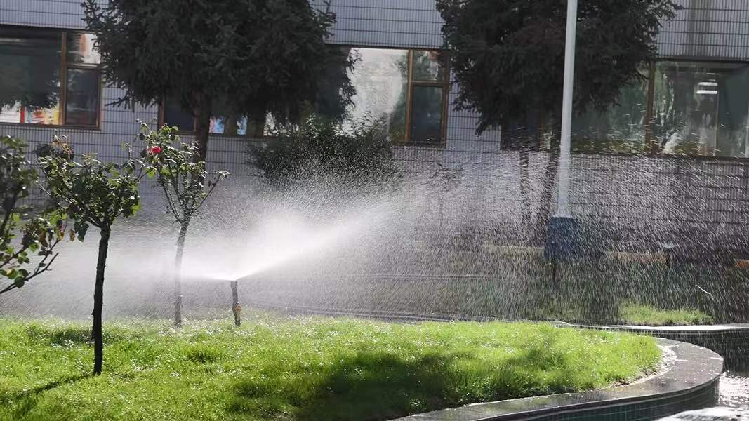 臨近傍晚,神木煤化工電化公司近8萬平方米的綠化區域內,被烈日炙烤了一天的花草樹木正在開懷暢飲,噴淋管道中流出的一股股清澈透明的水,肉眼看上去和自來水沒有分別,周圍也聞不到一絲絲臭味。殊不知,這些水都是電化公司生活污水凈化處理后的中水。
