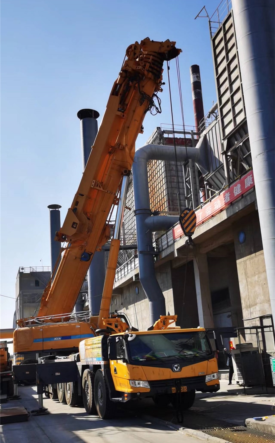 早上8:30,280噸吊車進(jìn)入檢修現(xiàn)場,經(jīng)過吊車師傅及檢修人員的精心組裝,吊車具備作業(yè)條件,為拆除工作做好了準(zhǔn)備。10:30分,隨著指揮人員一聲令下,在生產(chǎn)技術(shù)部的指導(dǎo)和檢修師傅們的密切配合下,舊煤氣換熱器拆裝和新?lián)Q熱器的安裝僅用了3個(gè)小時(shí),在高效完成拆裝的同時(shí),為后續(xù)各窯煤氣換熱器的吊裝積累了豐富的經(jīng)驗(yàn)。