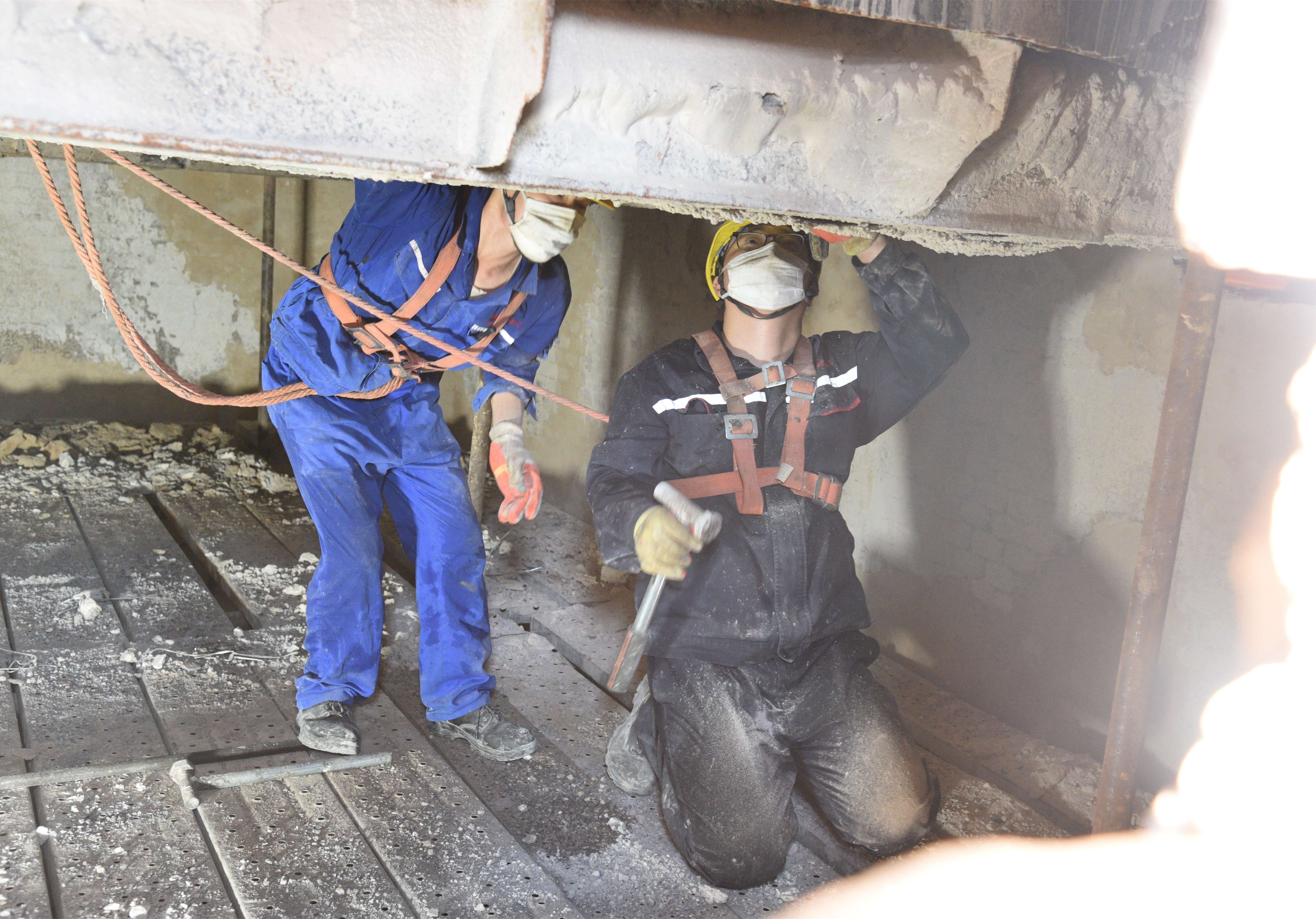 更換除塵器絞輪 拆除舊換熱器 更換除塵器絞輪 清理上吸氣梁進氣孔 清理上吸氣梁進氣孔 制作換熱器
