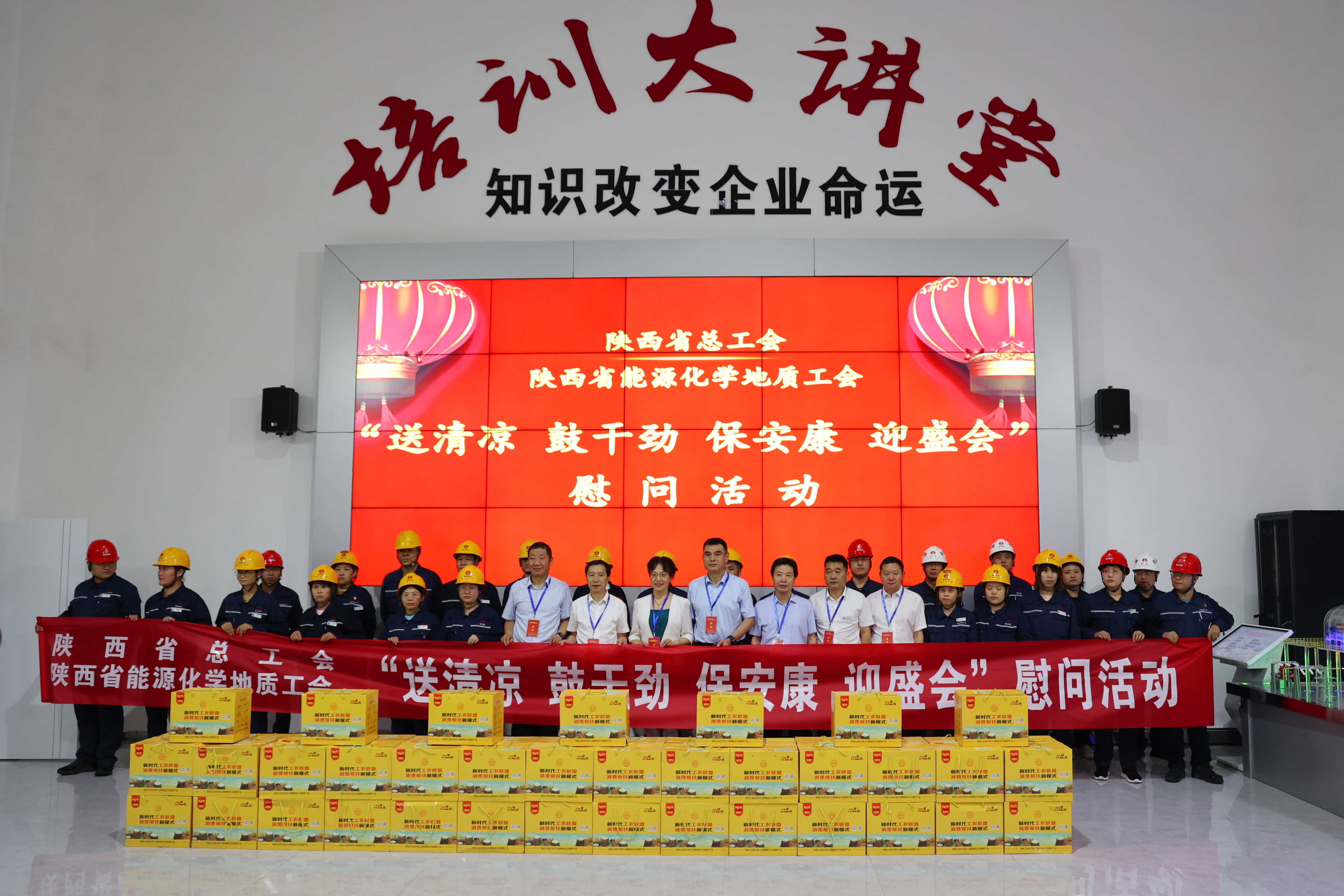 8月18日,陜西省總工會黨組成員、女職工委員會主任劉皓,能源化學地質工會主席莊華章,陜煤集團黨委委員、工會主席李向東等來神木煤化工公司開展“送清涼 鼓干勁 保安康 迎盛會”活動。