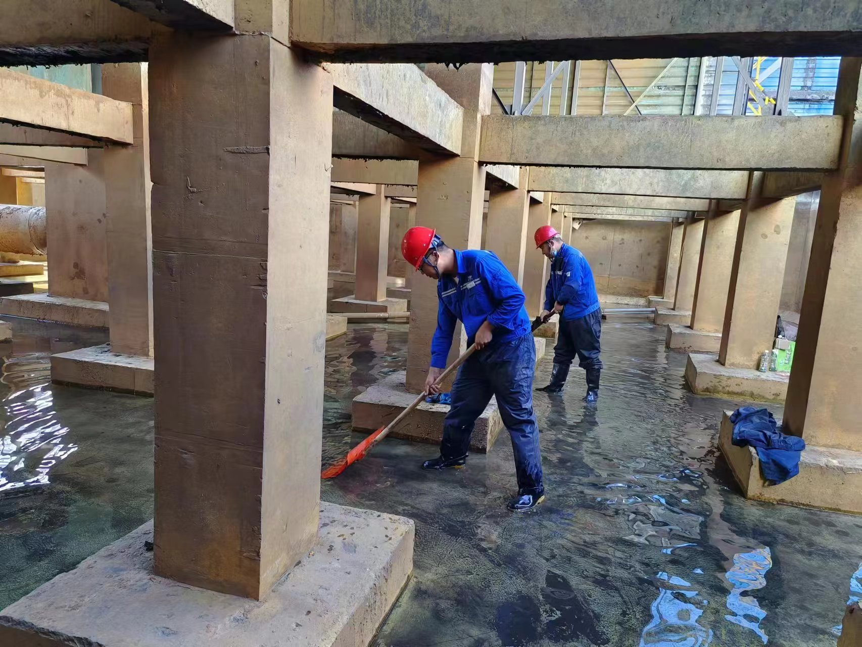 最終,經過兩天的奮戰,冷卻塔塔底水池順利完成清理,池水清澈見底,墻面也煥然一新。通過此次清理,也為后續的出水質量提供了可靠的保障,為車間的穩定運行打下了堅實基礎。(杜萍)