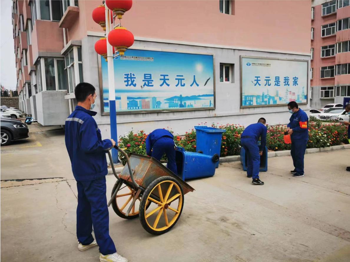 在職工家屬區,他們統一行動、互相配合,對家屬區公共設施進行衛生大清掃及防疫消殺,對所有垃圾桶進行徹底清理。他們還化身“宣傳員”,給職工家屬們宣傳防疫知識,動員大家佩戴好口罩、勤洗手、少出門、不聚集,不信謠不傳謠,調整心態,正確對待疫情……