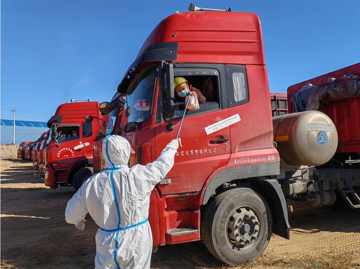 關鍵時刻,方顯責任擔當。在每天上午的全員核酸檢測中,志愿者們服從安排,有序進行秩序引導、掃碼等工作,及時在防疫工作群向各車間、部辦傳達核酸檢測現場情況,分批次、分時段組織廣大員工進行核酸檢測,做到應檢盡檢、不漏一人。在廠區各個對外門崗,他們化身“大白”,按照屬地政府疫情防控政策要求,嚴格落實大貨車貼封條放行和終端“‘五位一體’+24小時核酸檢測陰性證明+倒查3天核酸檢測陰性證明+落地檢”查驗措施,確保公司原料進廠、產品出庫正常進行。同時,切實做好服務保障工作,及時為貨車司機送去面包、火腿腸等物資,讓司機切實感受到來自企業的關愛,確保所有來廠貨車“即裝(卸)即走、快速高效”。