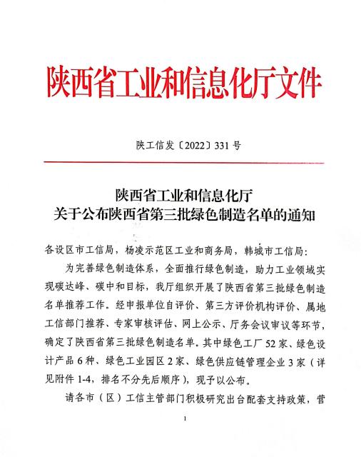 10月18日,陜西省工業和信息化廳公布了《陜西省第三批綠色制造名單》的通知,陜西煤業化工集團神木電化發展有限公司榜上有名。