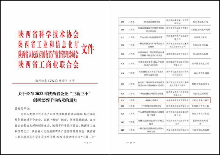 泰和公司榮獲2022年陜西省“三新三小”創新競賽三等獎
