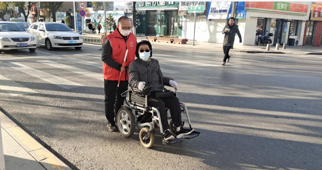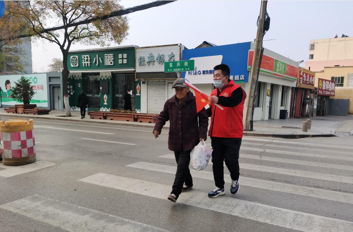 “大爺,現在是紅燈,您等會兒,我扶您過去。”“老奶奶,現在有很多車,等會我推著您走人行道。”“謝謝你,小伙子!”正值下班放學高峰期,神木市東興街古城北路十字路口車輛行人川流不息,在斑馬線兩側值守的志愿者們早已投入了志愿服務活動中。