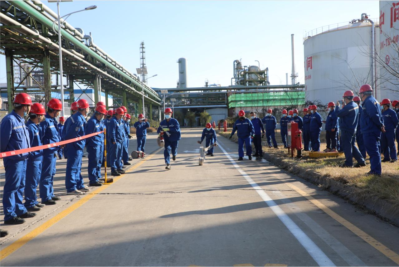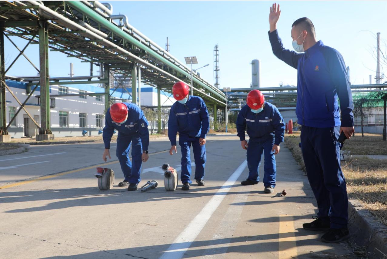 隨著比賽“開始”口令的下達,參賽選手們動作迅速、配合默契,一人在消防栓旁開閥門,一人連接消防水帶,一人連接消防槍頭后抓好水帶等待出水……整個過程一氣呵成,不僅展現了嫻熟的消防應急技能,更展現了敢于拼搏、永爭第一的精神面貌。最終,經過激烈角逐,加氫車間獲得第一名,檢修車間獲得第二名,公用車間獲得第三名。