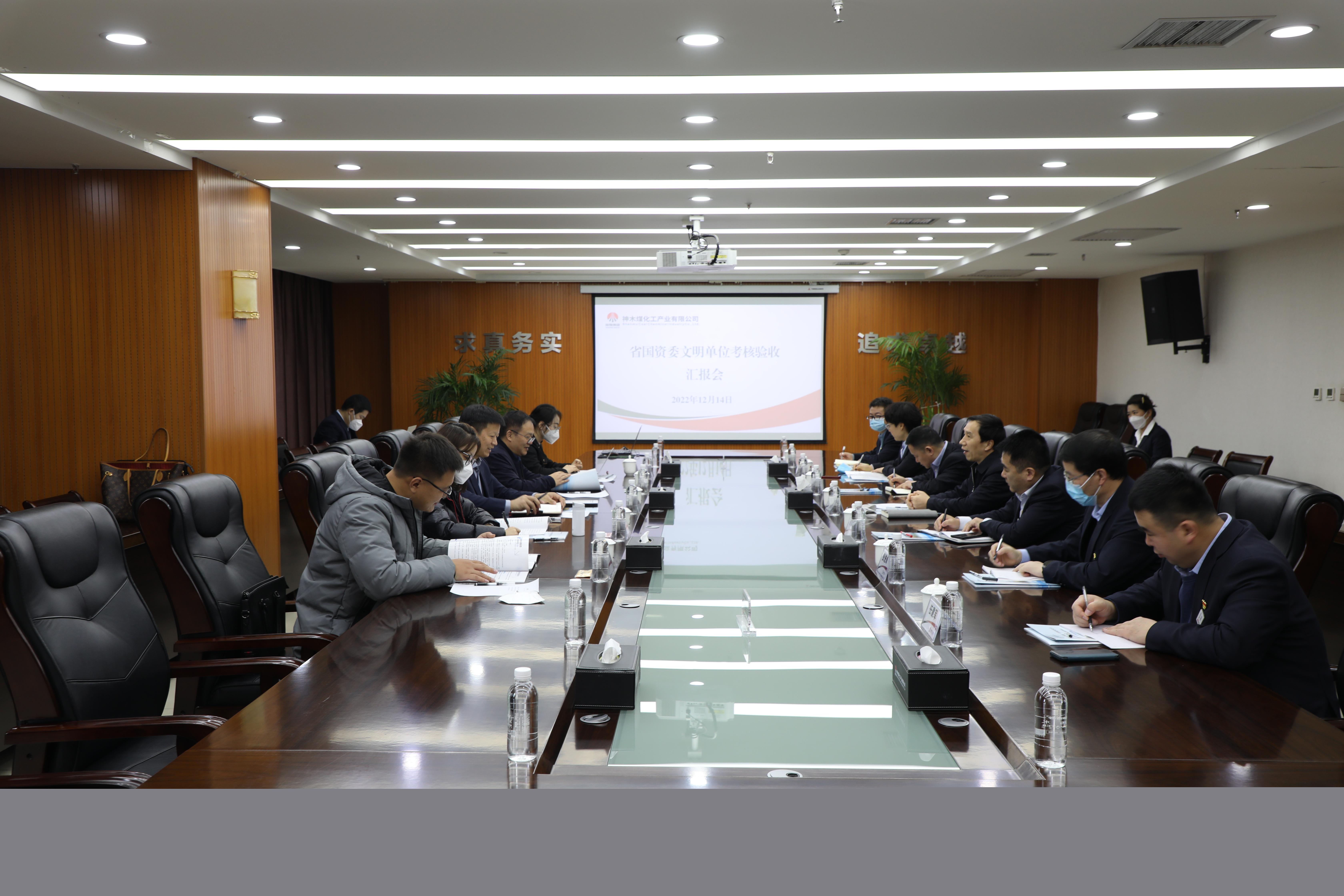 12月14日,陜西省國資委宣傳處處長胡銘,陜煤集團黨委宣傳部部長、新聞中心主任梅方義一行5人,對神木煤化工能源公司創建陜西省國資委文明單位工作情況進行檢查驗收。