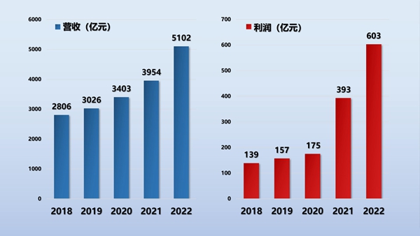 2022年,陜煤集團實現(xiàn)營收5102億元,比上年同期增長29%,利潤603億元,比上年同期增長53.4%,集團規(guī)模效益雙雙躍上新臺階,安全生產(chǎn)形勢持續(xù)向好。完成煤炭產(chǎn)量2.33億噸,化工產(chǎn)品產(chǎn)量1954萬噸,發(fā)電量515億度,粗鋼產(chǎn)量1217萬噸,金融、物流、建材、機械制造板塊持續(xù)發(fā)力。連續(xù)8年入圍世界500強榜單,位列2022年世界500強第209位,比上年220位前進了11位。位列中國企業(yè)500強第67位,蟬聯(lián)上榜陜企第一,排名穩(wěn)步提升,展現(xiàn)出良好的成長性。為全國18個省(區(qū)、市)提供能源支持,發(fā)揮了國有能源企業(yè)“壓艙石”作用。
