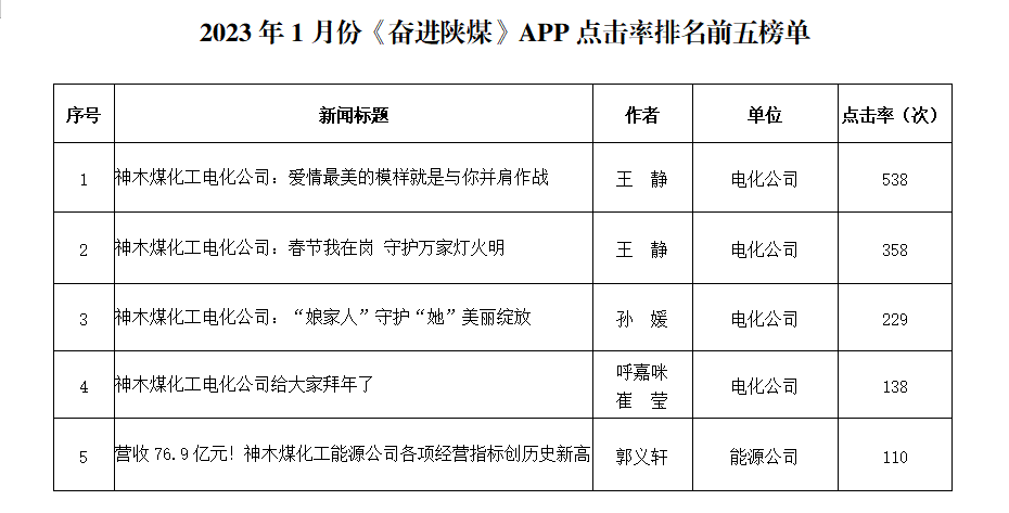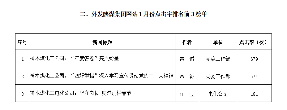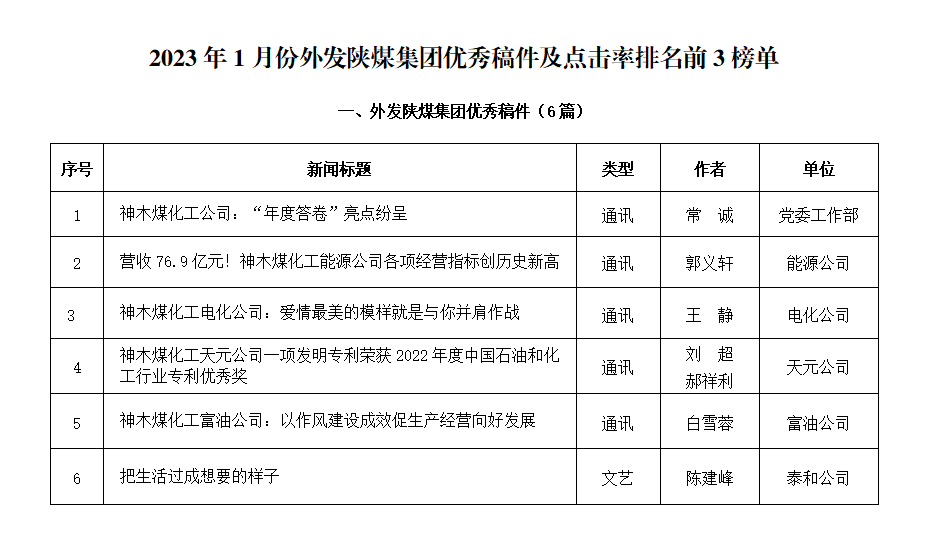 關(guān)于2023年1月份神木煤化工公司發(fā)稿及優(yōu)秀稿件評選情況的通報(bào)
