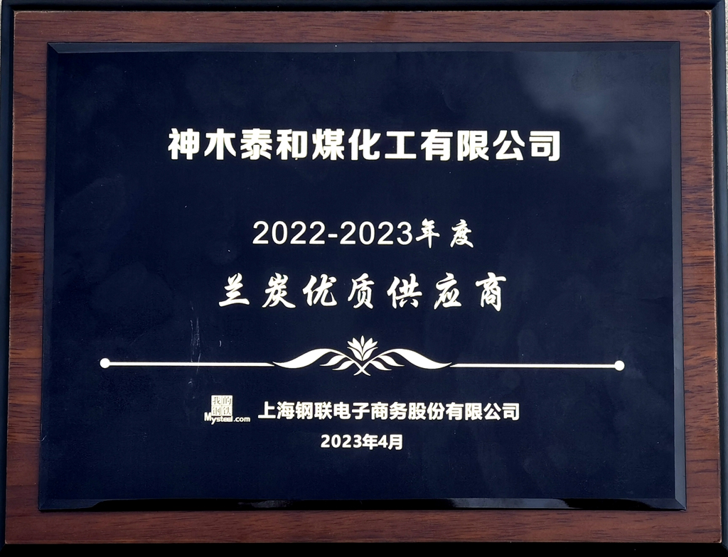 4月13日,神木煤化工泰和公司被上海鋼聯評為2022年度“優質供應商”。