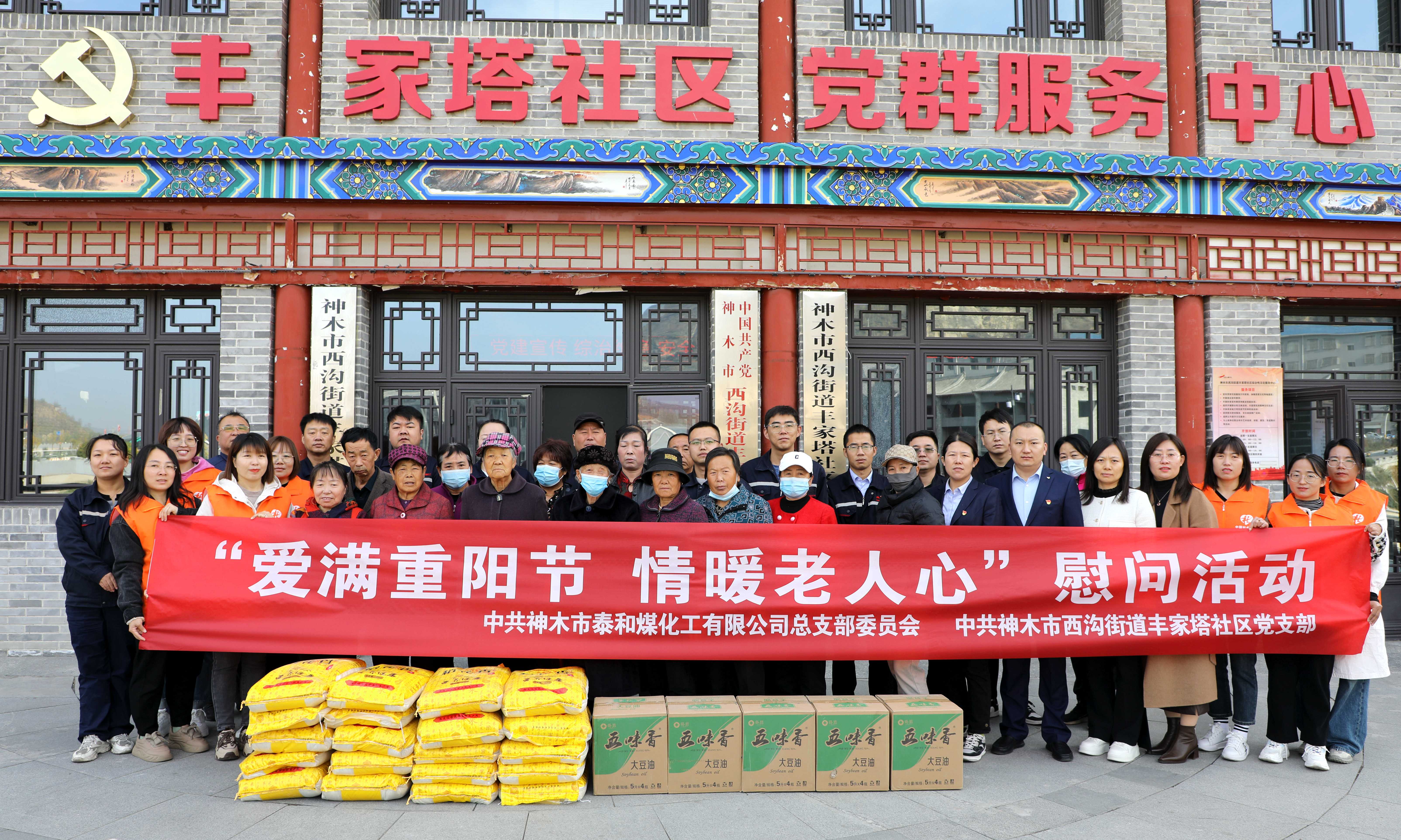 今歲又重陽,濃濃敬老情。10月23日,神木煤化工泰和公司黨員干部走進豐家塔社區開展“愛滿重陽節 情暖老人心”走訪慰問、關愛幫扶雙報到活動,泰和公司黨總支委員、副總經理王廷,豐家塔社區分管領導郭云霞及社區黨支部書記解瑞妮和雙方黨員參加活動。