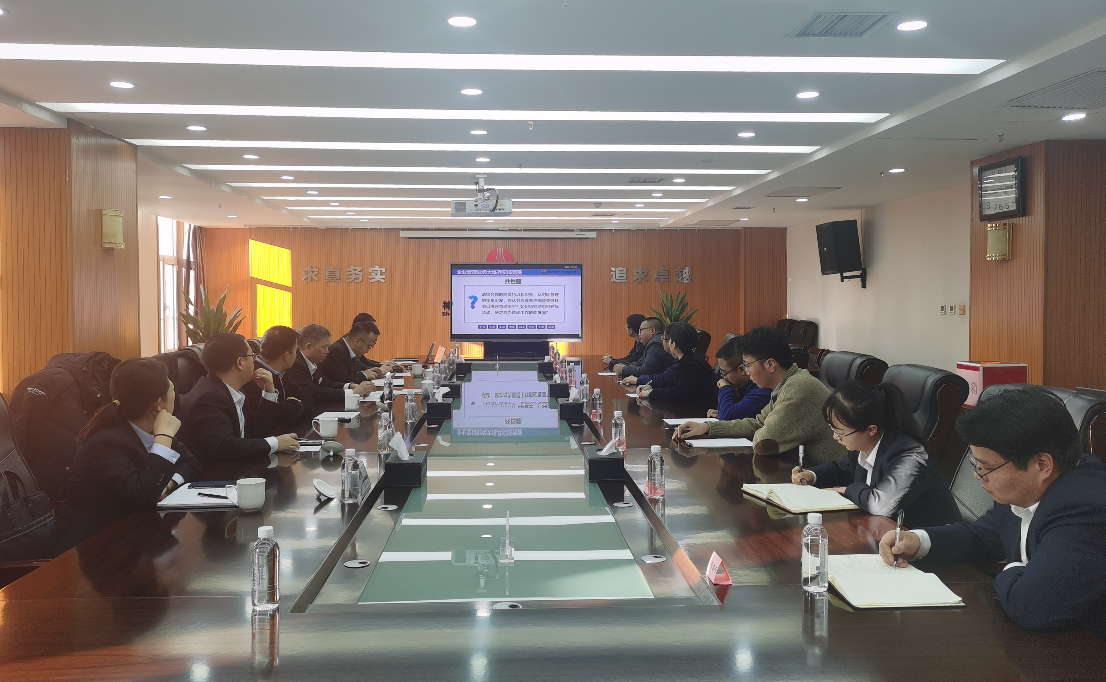 本次實操競賽以場景模擬的形式,圍繞國企改革深化提升行動、公司治理、任期制契約化管理、三會管理、目標責任及績效考核管理、對標管理、三品建設等內容進行考核和檢驗。競賽分兩個環節,第一環節為共答題環節,第二環節為隨機答題環節,由參賽選手抽簽,對抽到問題進行回答。