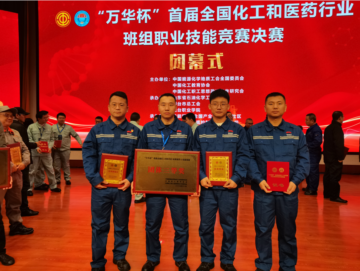 12月20日,“萬華杯”首屆全國化工和醫藥行業班組職業技能競賽落幕,神木煤化工天元公司易國有班組榮獲團體三等獎,被評為“全國化工和醫藥行業優秀班組”,班長易國有被評為“全國化工和醫藥行業優秀班組長”。