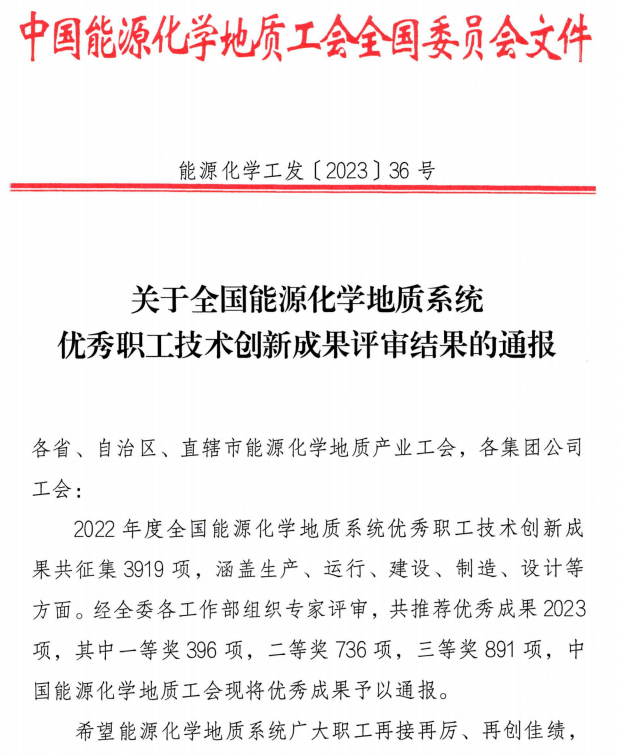 喜報!公司9個職工技術創新項目榮獲全國能源化學地質系統優秀職工技術創新成果獎