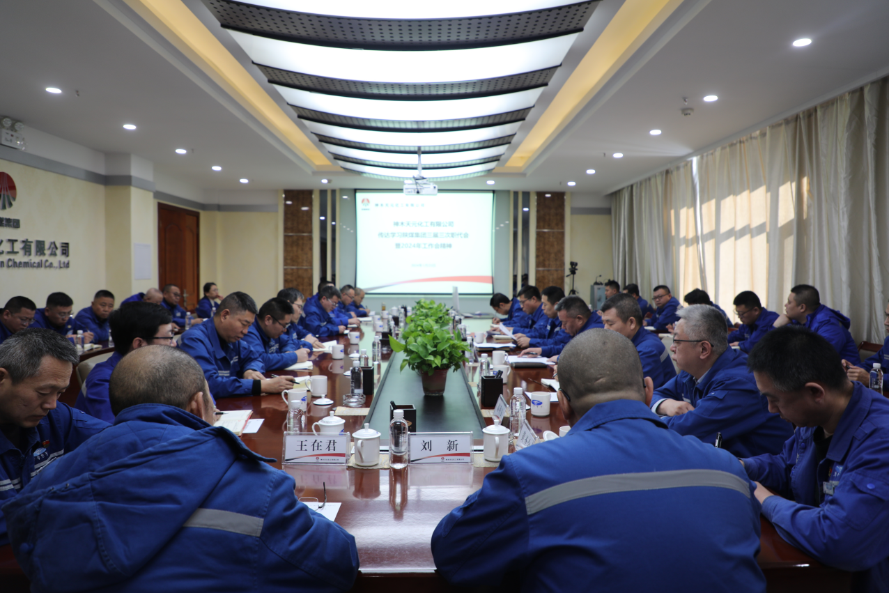1月23日,神木煤化工天元公司召開專題會議傳達學(xué)習(xí)陜煤集團三屆三次職代會暨2024年工作會精神,天元公司領(lǐng)導(dǎo)班子成員,副總師,各黨支部書記,各車間、部辦、中心負責(zé)人參加會議。