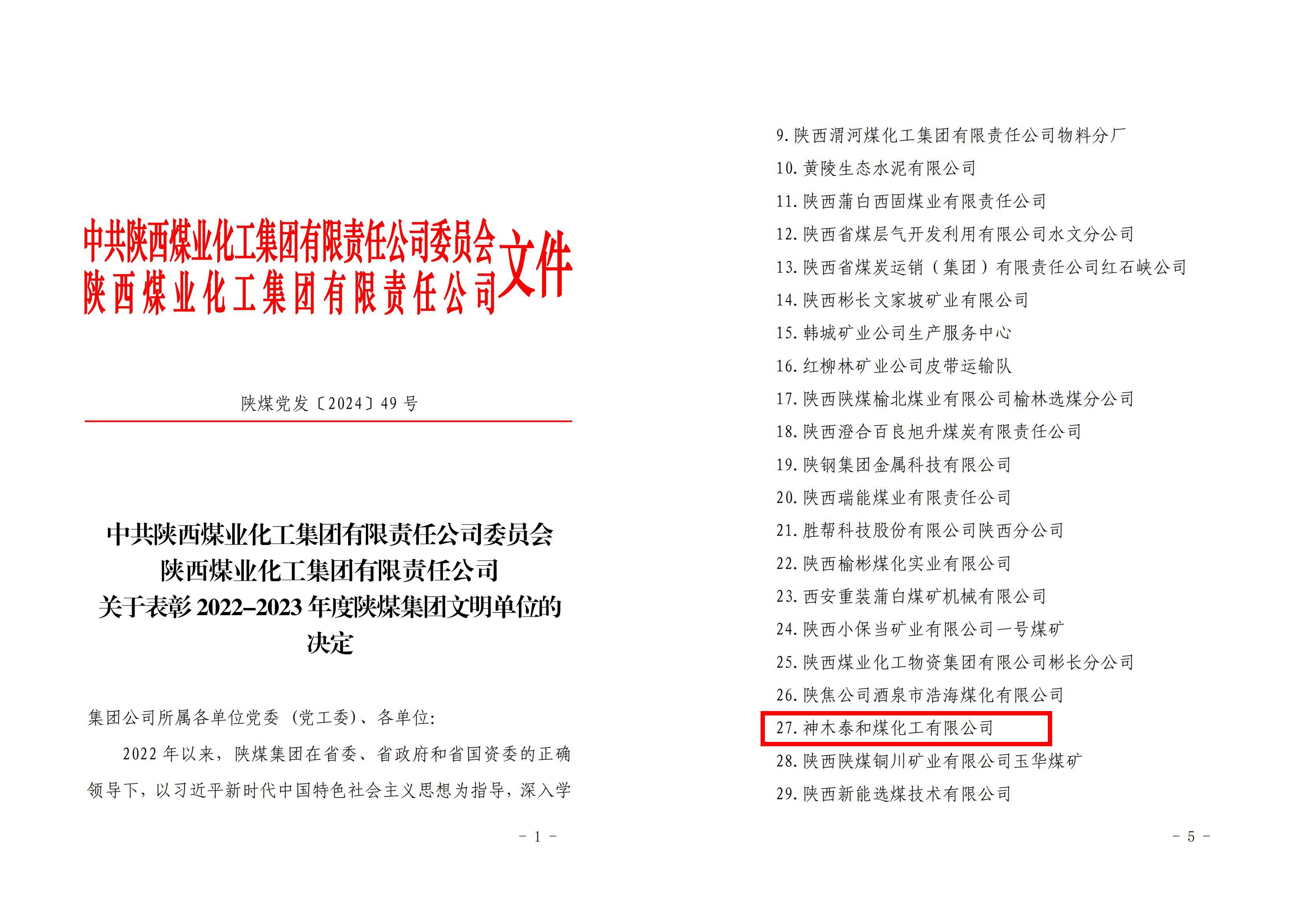 近日,在陜煤集團(tuán)2023年度文明單位、勞動(dòng)模范、陜煤工匠表彰大會(huì)中獲悉,神木煤化工泰和公司獲得2022-2023年度陜煤集團(tuán)文明單位榮譽(yù)稱號(hào)。