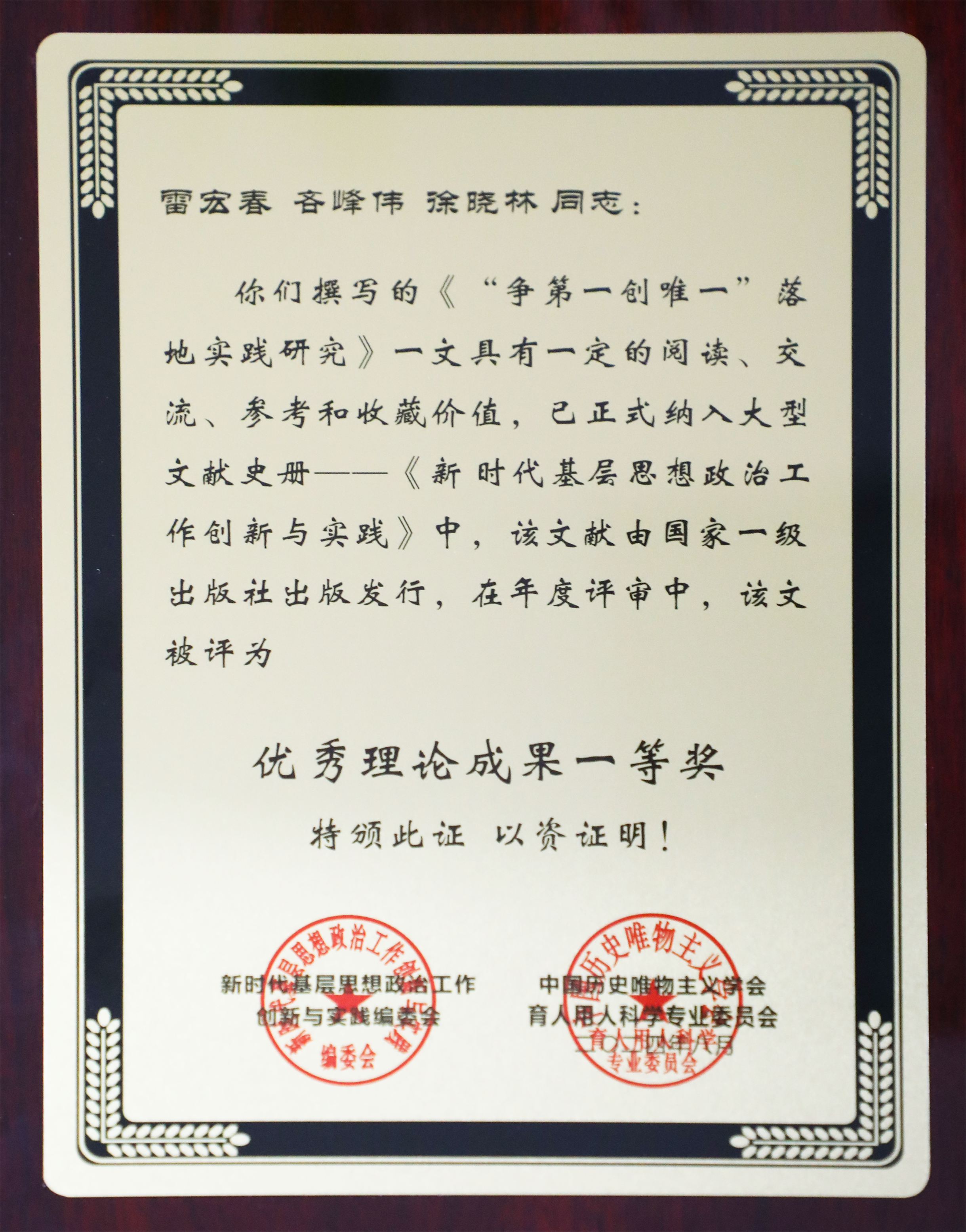 8月13日,從相關(guān)文件獲悉,由公司黨委書記、董事長雷宏春主筆的《“爭第一創(chuàng)唯一”落地實踐研究》理論成果,被新時代基層思想政治工作創(chuàng)新與實踐編委會、中國歷史唯物主義學(xué)會育人用人科學(xué)專業(yè)委員會評選為優(yōu)秀理論成果一等獎,并收錄于《新時代思想政治工作創(chuàng)新與實踐》大型文獻史冊,由國家一級出版社公開發(fā)行出版。