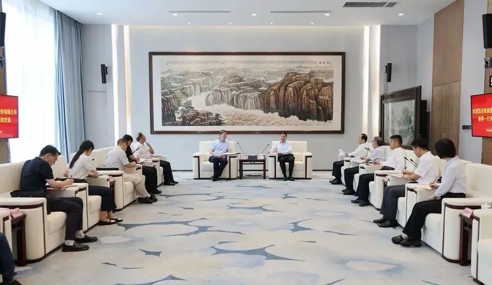 8月16日上午,浩吉鐵路公司黨委副書記、總經(jīng)理黃鑫,黨委委員、副總經(jīng)理金成旭一行到陜煤集團(tuán)座談交流。陜煤集團(tuán)黨委書記、董事長張文琪,黨委副書記、董事、總經(jīng)理趙福堂參加座談。