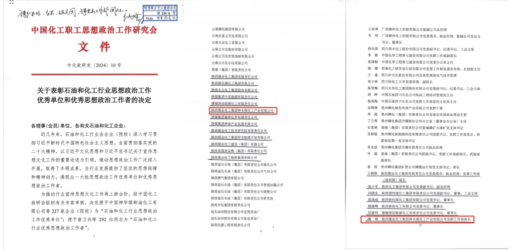 近日,中國化工職工思想政治工作研究會下發文件,公司榮獲石油和化工行業思想政治工作優秀單位稱號。