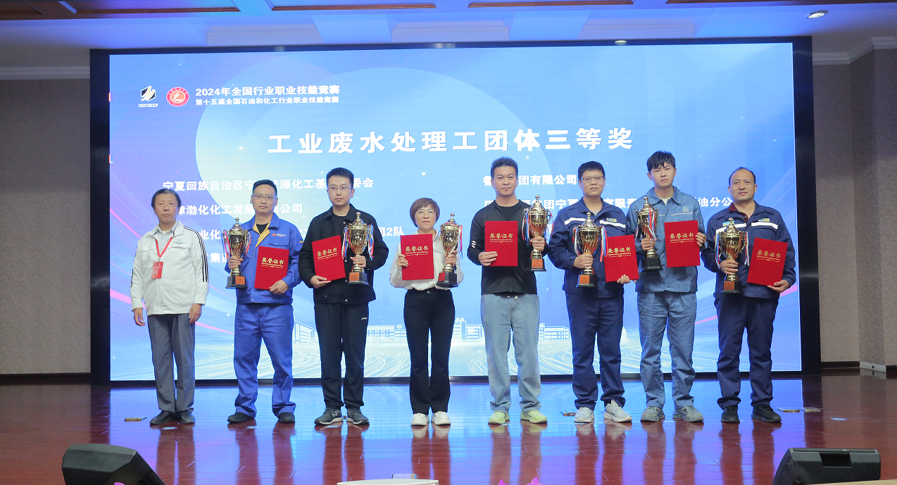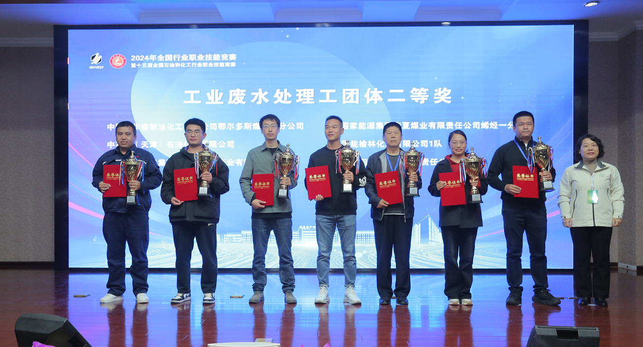 在公司參賽隊伍中,由武建洲、賀昭蝦、李偉、李龍組成的神木煤化工1隊分別獲得工業廢水處理工團體二等獎、化工儀表維修工團體優勝獎;由郭亮、王輝、郭江平、王永鋒組成的神木煤化工2隊分別獲得工業廢水處理工、化工儀表維修工團體三等獎;賀昭蝦獲得工業廢水處理工個人銅獎。