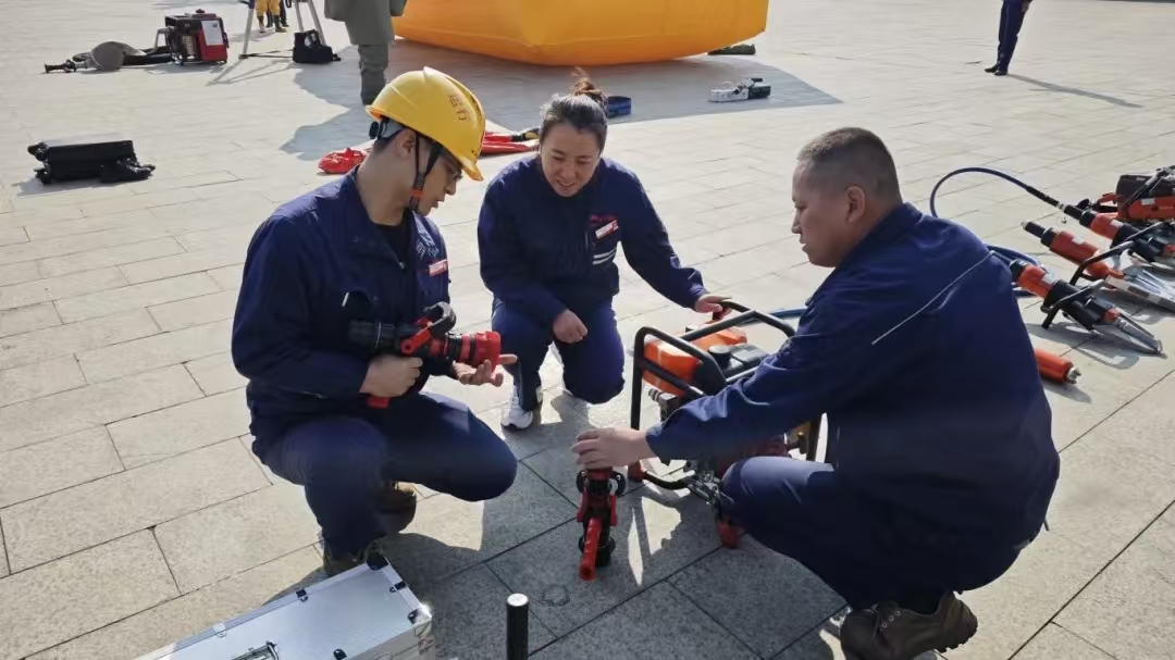活動中,能源公司消防救援隊展示了正壓式空氣呼吸器使用技巧、心肺復蘇術操作要點以及滅火器的正確使用方法,講解了消防安全知識、消防安全警示案例、消防設備的性能及使用方法、自救逃生技能等內容,組織了應急技能和滅火器使用實操環節,進一步加強員工的消防安全意識和自救及互救能力,引導全體員工從思想上重視,行動上落實,做到會報警、會滅火、會自救、會逃生。同時,能源公司消防救援隊還邀請職工現場觀看、體驗了個體防護裝備、帶壓堵漏工具、破拆營救裝備系統等20余種應急消防裝備,讓大家對消防器材有了更直觀的認識。
