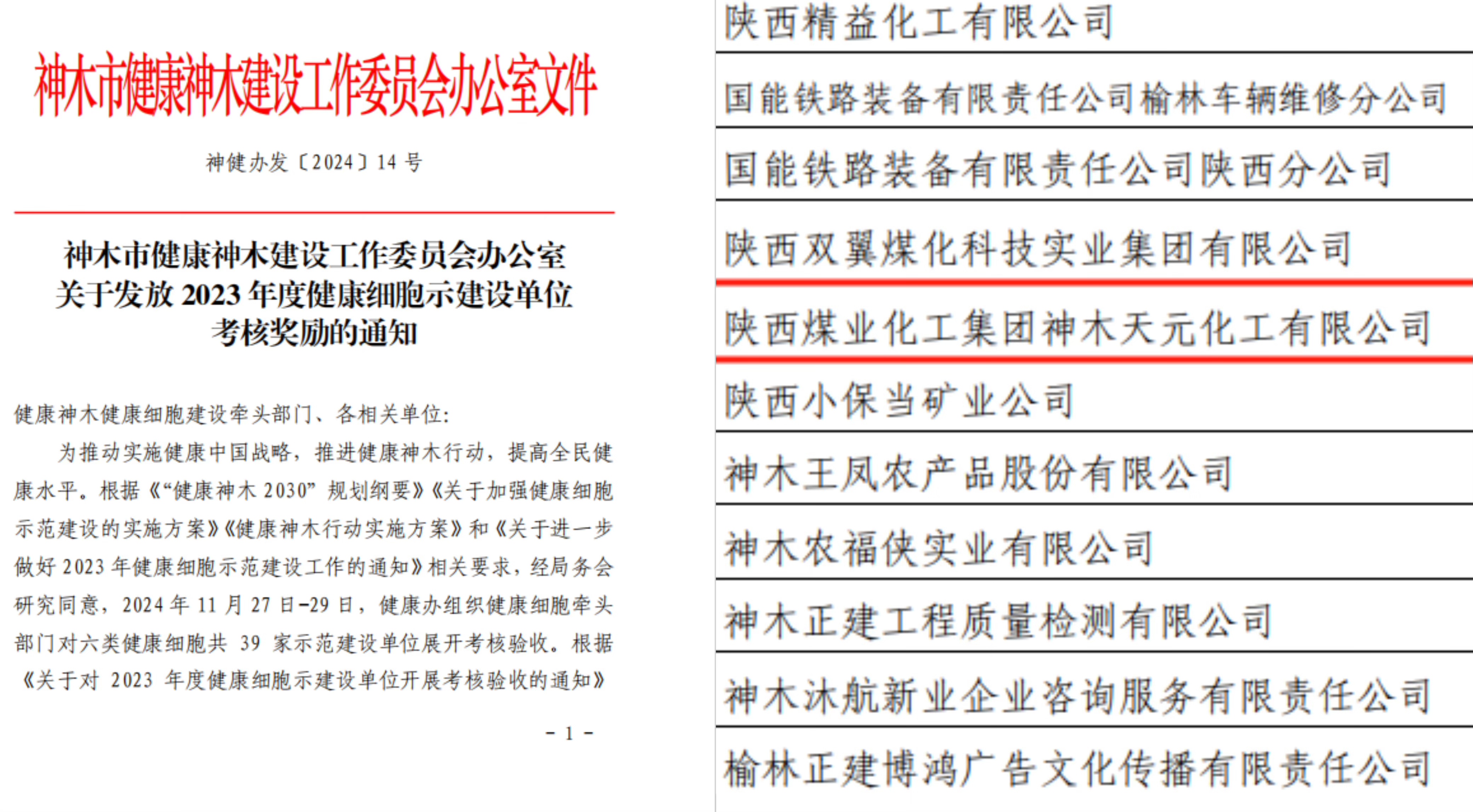 天元公司榮獲神木市2023年度健康細胞示范建設單位稱號