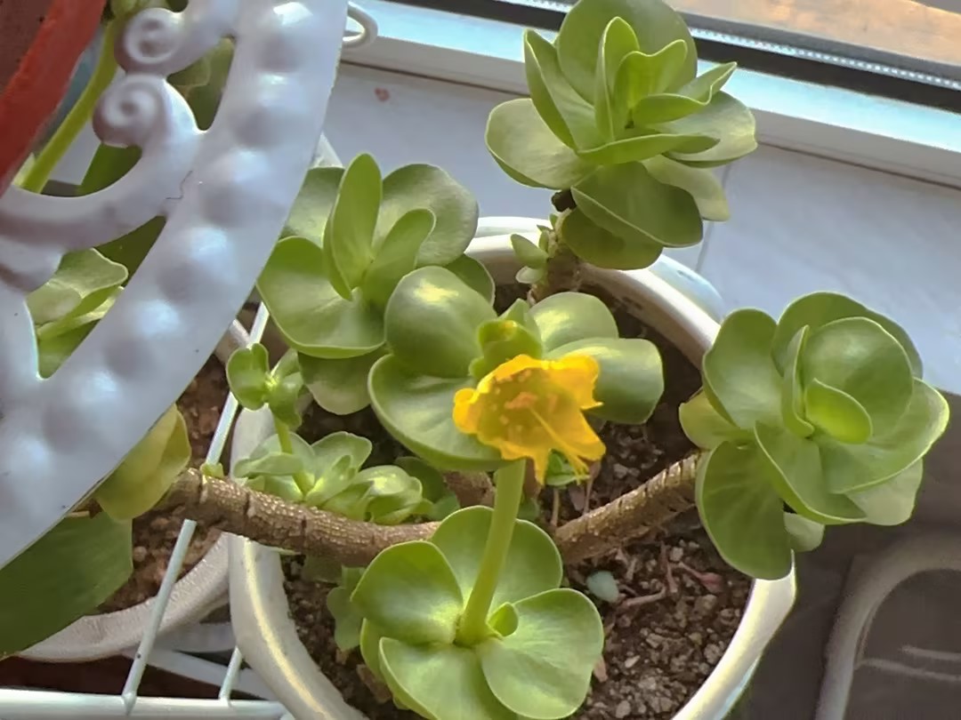 那是一盆放在角落里的多肉,平日里它總是默默地待在那,不引人注目。但是此刻,在它層層疊疊的葉片中央,竟然抽出了一根細(xì)長(zhǎng)的莖,莖的頂端,綻放著一朵小巧玲瓏的花。花瓣呈淡淡的黃色,猶如被晨露輕吻過一般,嬌嫩而羞澀?;ㄈ锝瘘S,像是被陽光點(diǎn)燃的火焰,在這寒冷的冬日里倔強(qiáng)地燃燒著。