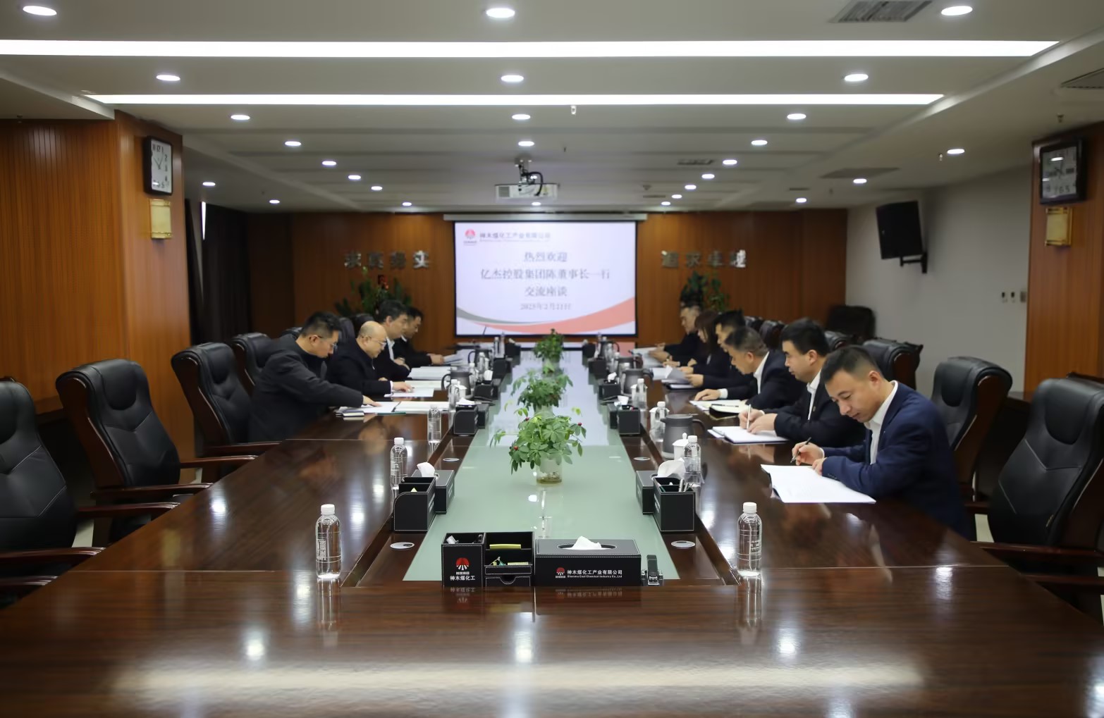 2月21日,億杰控股集團董事長陳高志一行到神木煤化工公司座談交流。公司黨委書記、董事長雷宏春及其他在家領導,相關部門負責人參加座談。