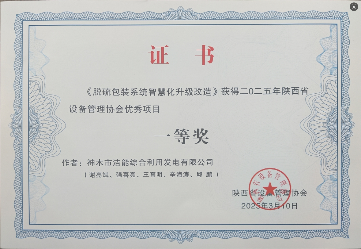 近日,2025年陜西省設備管理協會優秀項目評選結果正式揭曉,神木煤化工公司申報的《脫硫包裝系統智慧化升級改造》項目榮獲一等獎,《1#氣燒石灰窯能效提升技術研究》和《鍋爐智能優化控制技術應用》項目榮獲三等獎,《反滲透外排水回收改造》項目榮獲優秀獎。