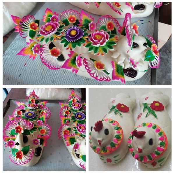 從家鄉(xiāng)禮饃的形狀,我更支持許石林先生的繭鶼兒之說,把它作為繭和鶼的復(fù)合體,象征著多子多福,夫妻恩愛美滿。象龍一樣成為中華民族美好愿望的化身。(鄧國濤)