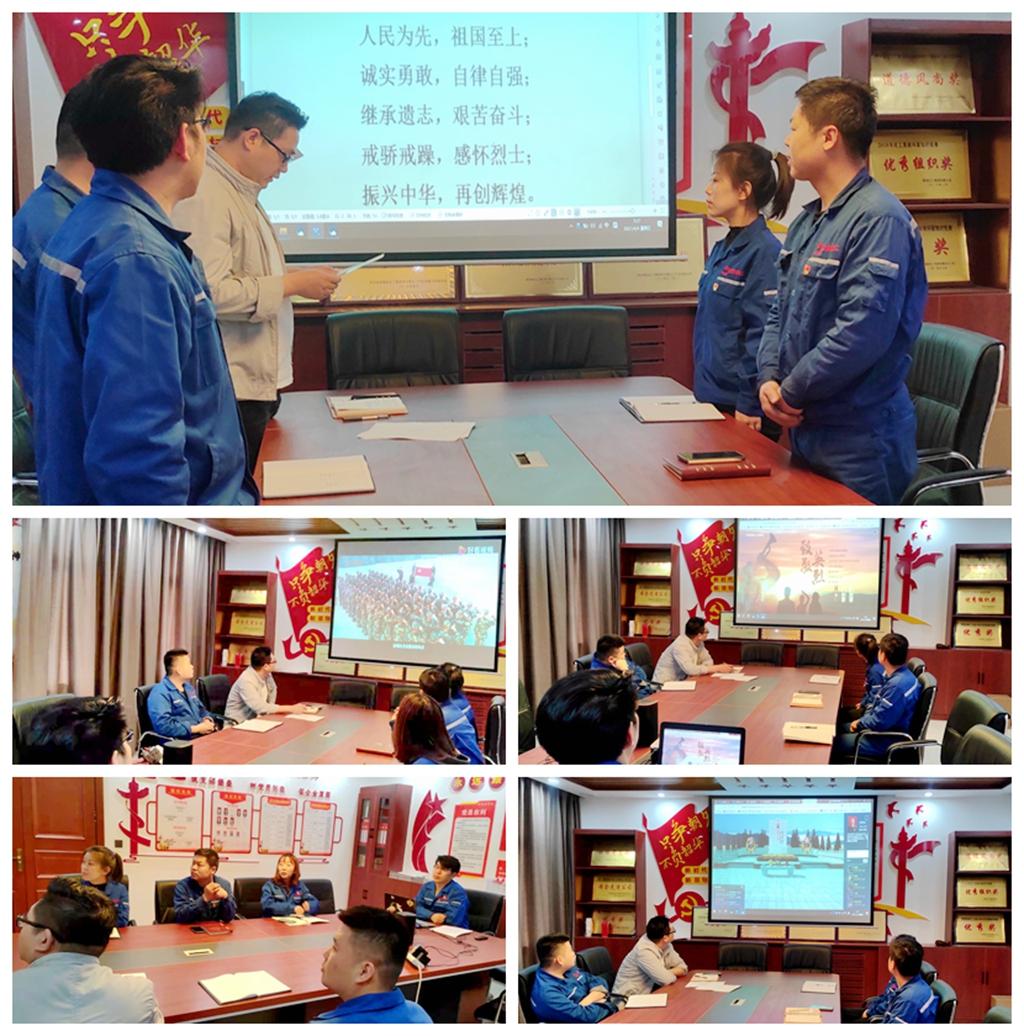 同志們首先觀看了中國百年苦難斗爭史和中國共產黨的述職報告。通過黨史視頻,從搖搖欲墜的清政府到北洋軍閥混戰,從紅船開始到南昌起義,從爬雪山過草地到抗日戰爭,從解放戰爭到新中國成立,從計劃經濟到改革開放,一路艱辛走來的曲折史感受革命先烈為了新中國拋頭顱灑熱血的愛國主義情懷。