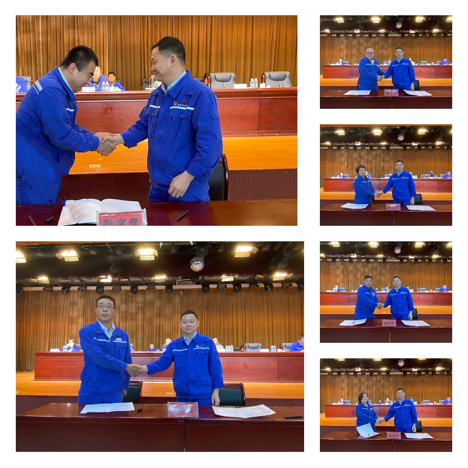 公司黨委書記、董事長辛文輝與各部室負責人簽訂了2020年度生產經營目標責任狀、安全(消防)責任狀和集體勞動合同。黨群工作部組織全體職工代表對領導干部進行了民主評議。