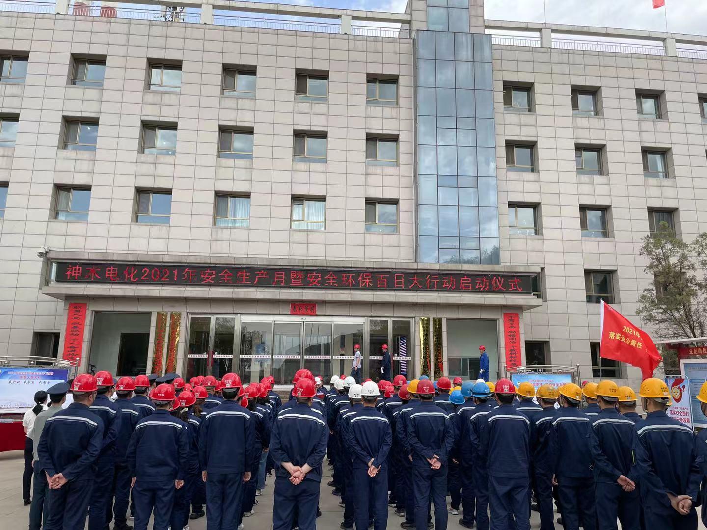 6月1日,電化公司舉行2021年安全生產月暨安全環保百日大行動啟動儀式。電化公司領導、各部室、分廠以及物業安保人員共計180余人參加啟動儀式。