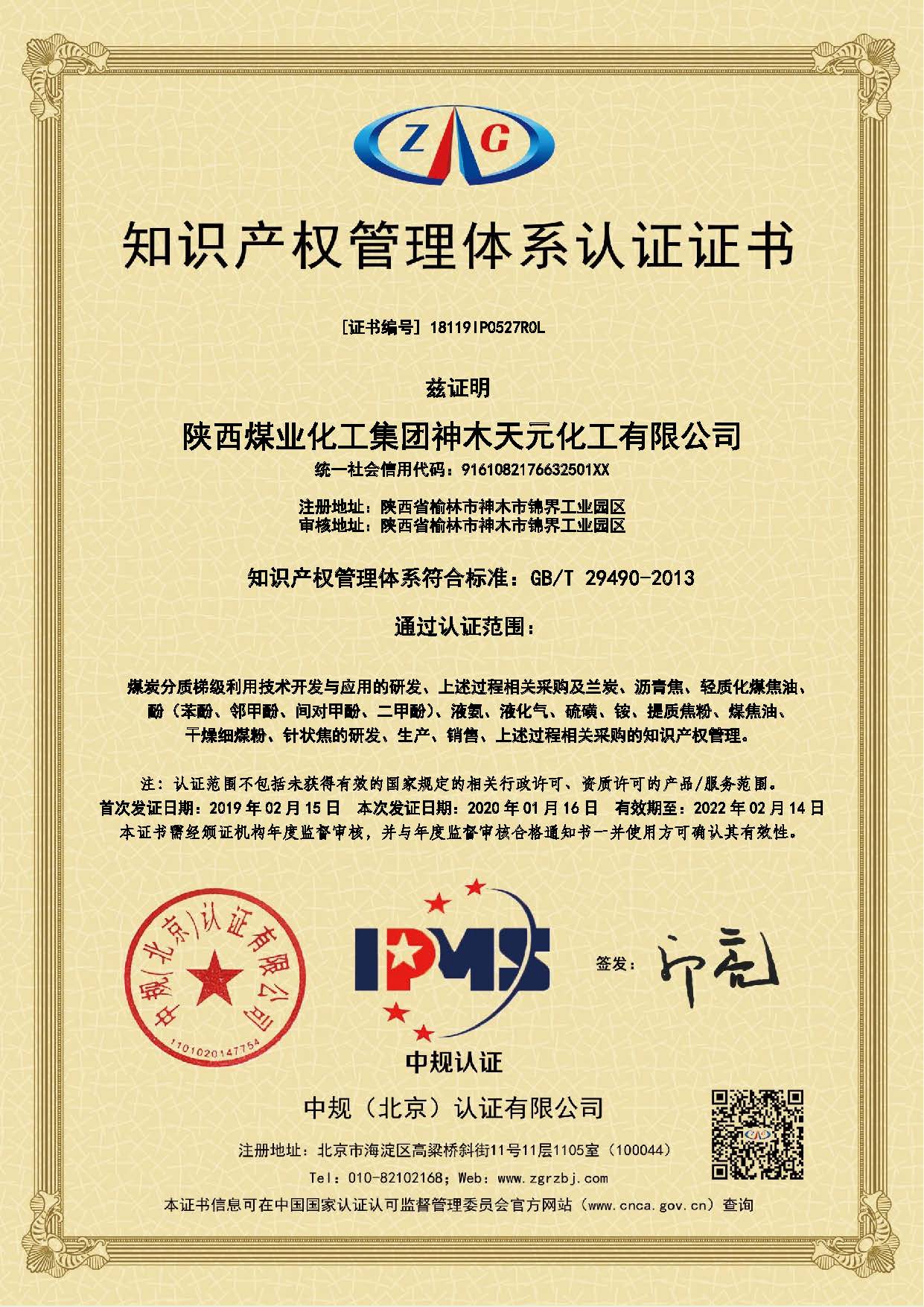 天元公司知識產權管理體系運行經過貫標啟動、調查診斷、體系構建、發文宣貫、實施運行、內部審核、管理評審7個階段,于2019年1月通過中規(北京)認證有限公司初次認證。2019年12月,通過第一次監督審核,并針對企業產業延伸及工藝技術升級提出擴大認證范圍申請,經認證天元公司審核通過。2020年12月,體系通過二次監督審核,持續保持認證資格。2021年9月,在體系持續有效運行的基礎上,天元公司將陸續開展再認證準備工作。另外,天元公司因貫標工作突出,貫標事例作為典型案例入選《知識產權認證行業白皮書》。