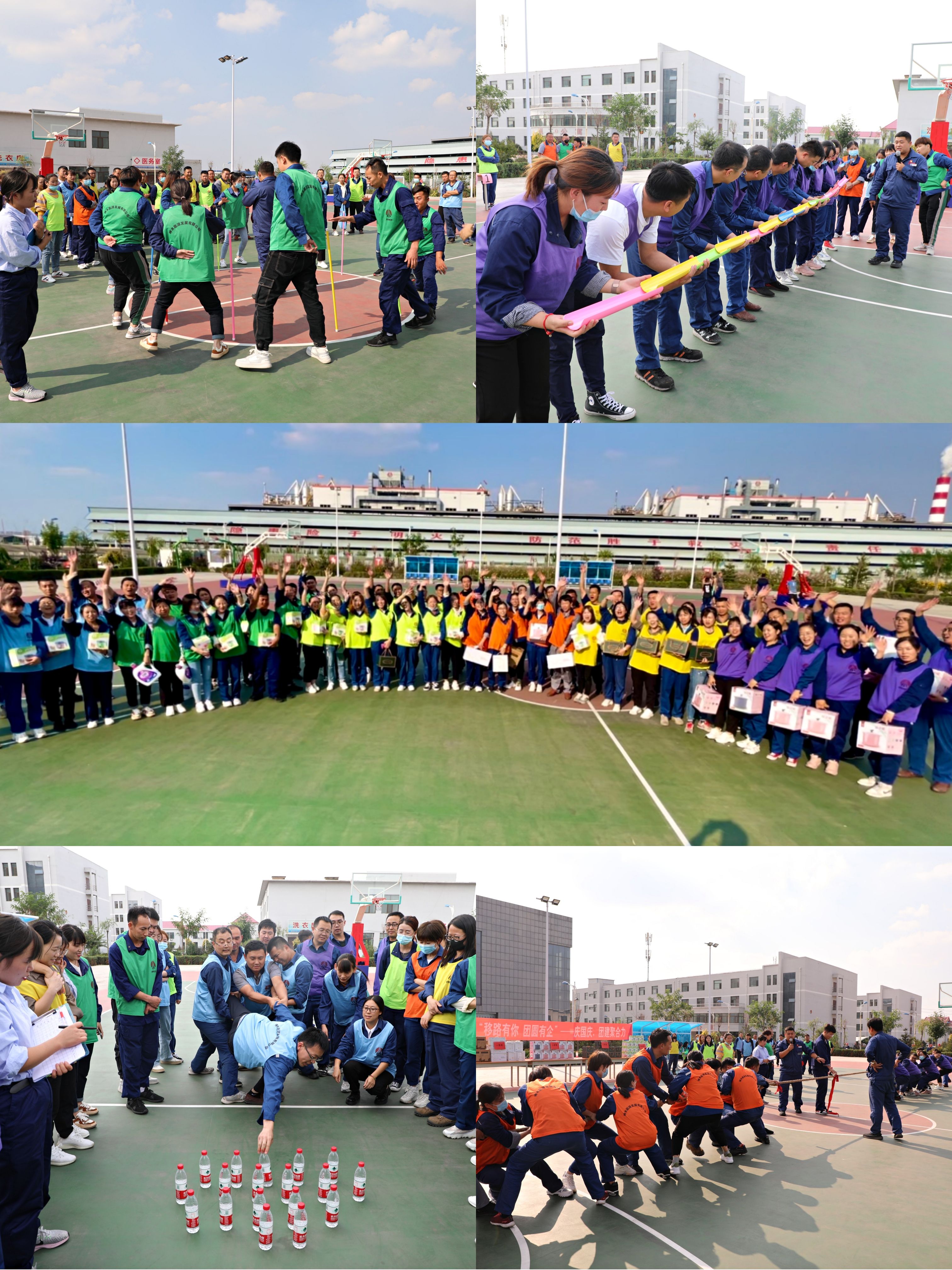 為了讓工作人員建立相互熟知、相互信任的團隊氛圍,能源公司工會組織大家開展了團建活動。比賽由各分公司和機關人員抽簽組成,共有天藍色、深綠色、熒光綠、橘色、黃色、紫色六支代表隊,當主持人將“不倒森林、珠行千里、隔線取物、拔河比賽”等項目的比賽規則公布后,現場職工都躍躍欲試。