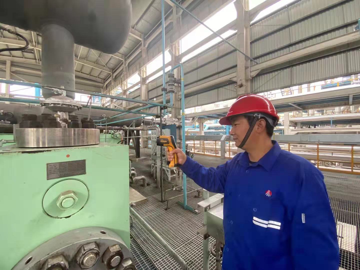 為確保節日期間設備長周期安全穩定運行,他們一大早就來到生產現場,仔細檢查每臺設備,及時排查消除設備故障隱患。在機泵隆隆的伴奏聲中,他們拿著測溫槍、測振儀、聽振器、扳手等工具仔細檢查著機組設備的運行狀況,確保節日期間生產平穩運行。雖然手上、臉上滿是油污,但他們深知安全生產容不得半點馬虎,必須慎之又慎、如履薄冰。