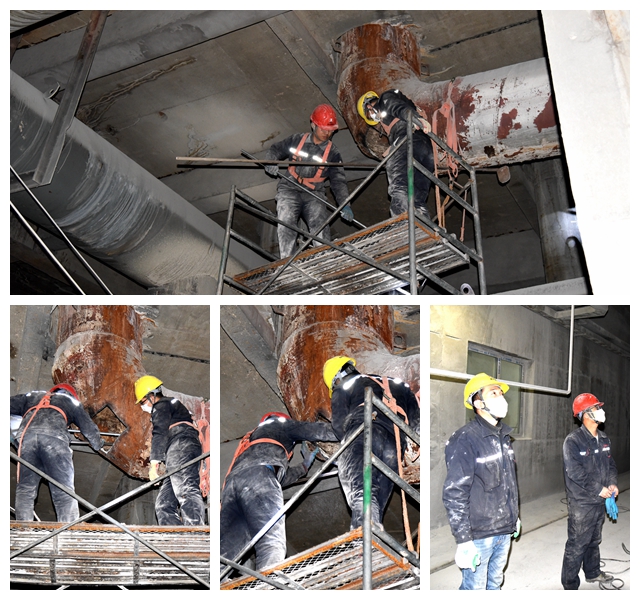 車間主任廉斐斐果斷決定下午2點(diǎn),迅速停窯處理堵塞問題。為了減小停窯生產(chǎn)影響,廉斐斐迅速組織班組人員對(duì)1#窯煤氣換熱管道堵塞進(jìn)行清理,由于堵塞部位離地面6米之高,加之堵塞物都是溫度較高和極細(xì)的石灰粉末,這對(duì)清理工作帶來極大的困難。為了加快清理工作的順利完成,軍人出身的石灰車間主任雷厲風(fēng)行、以身示范,不顧高溫和石灰粉塵的侵?jǐn)_,登上6米多高的腳手架,帶頭進(jìn)行清理工作。清理人員受廉斐斐的影響,大家都迅速的投入戰(zhàn)斗之中。清理人員被分為兩組,一組進(jìn)行清理,一組人員則在下面隨時(shí)進(jìn)行安全監(jiān)護(hù)等工作。