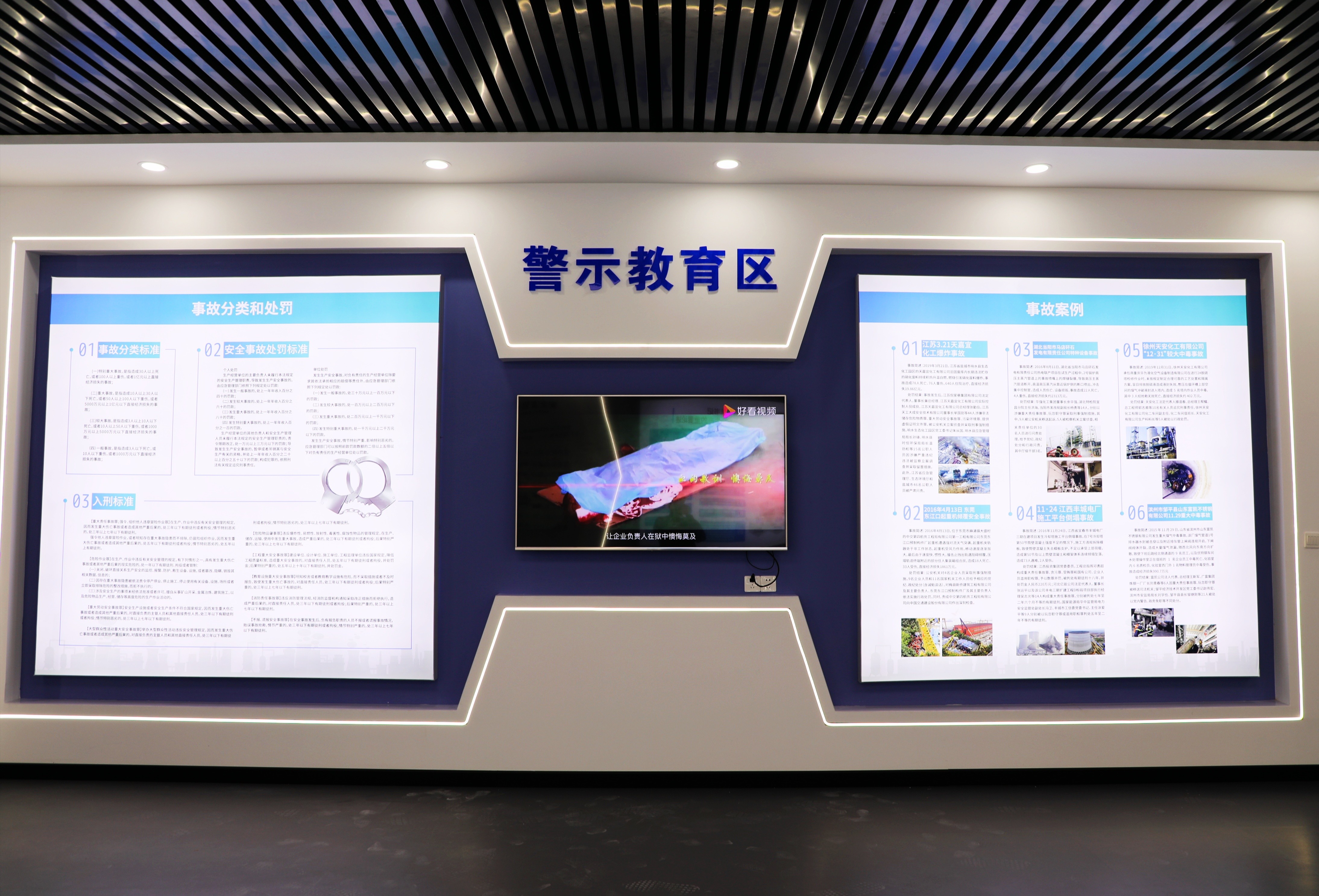 安全警示教育室以“事故警示教育、安全知識教育、實際操作體驗”為標準,安全教育室包括警示教育區、互動學習區、案例展示區、安全培訓區四個區域。通過展示圖板,視頻警示、互動式體驗,采用生產一線活生生的素材,揭示了忽視安全、漠視生命而帶來的慘痛教訓。進一步提升能源公司員工安全認知能力和安全憂患意識,時刻繃緊安全弦。