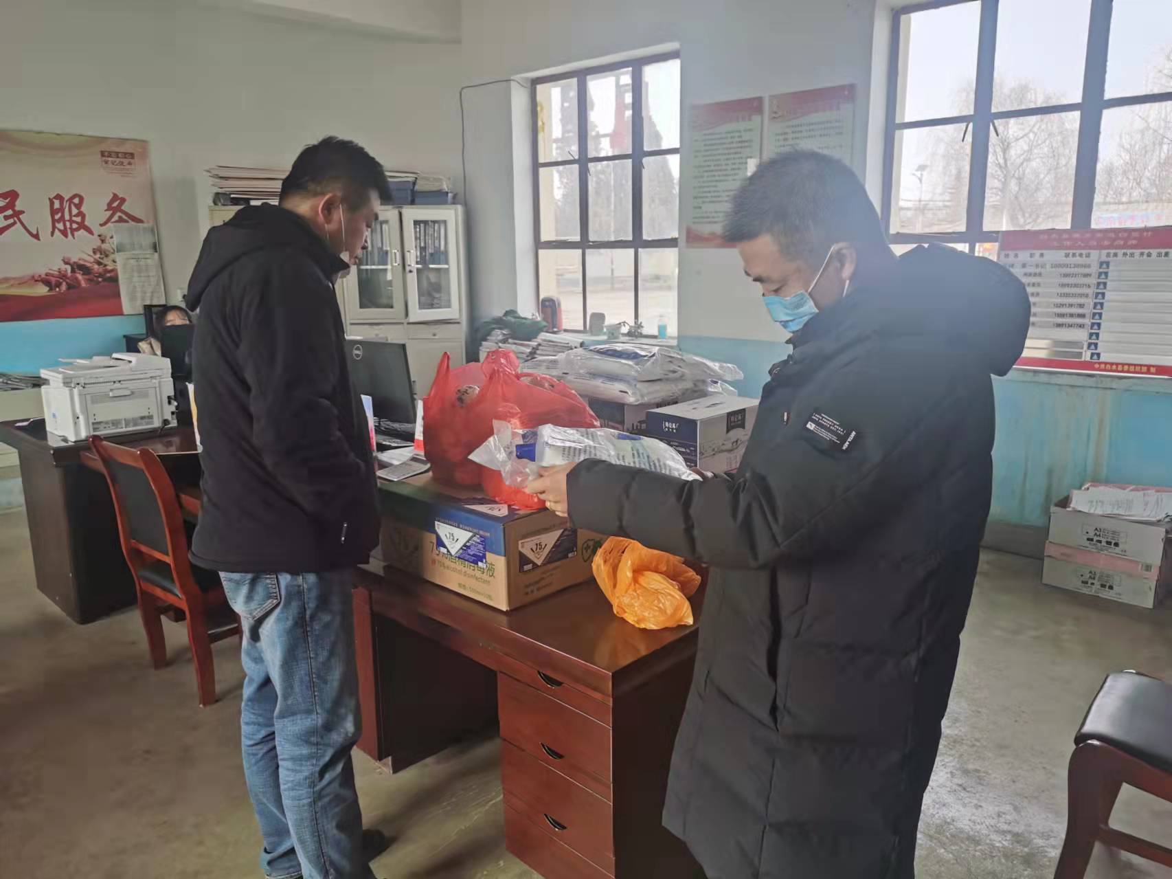 疫情就是命令,防控就是責任,神木煤化工黨委堅決按照陜煤集團黨委要求,把抗擊疫情作為一項特殊時期重要、緊急、光榮的政治任務,高度重視,迅速響應,由于疫情防控需要,遠在千里之外的該公司委托駐村工作隊,慰問了幫扶村防控點工作人員,為他們送去了口罩、消毒液、酒精、方便面、牛奶等防疫物資和生活物資,把該公司的問候和關愛送到了堅守疫情防控的一線。