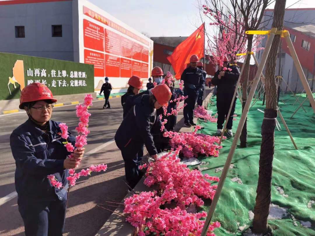 進入臘月,年也就近了。為美化廠區環境,營造濃厚過年氣氛,該公司廠區、生活區主干道兩旁的樹木都綁掛上了仿真桃花枝,粉嘟嘟的桃花,營造出特別的色彩和年味兒,也將電化公司的廠區裝點得分外嬌俏。