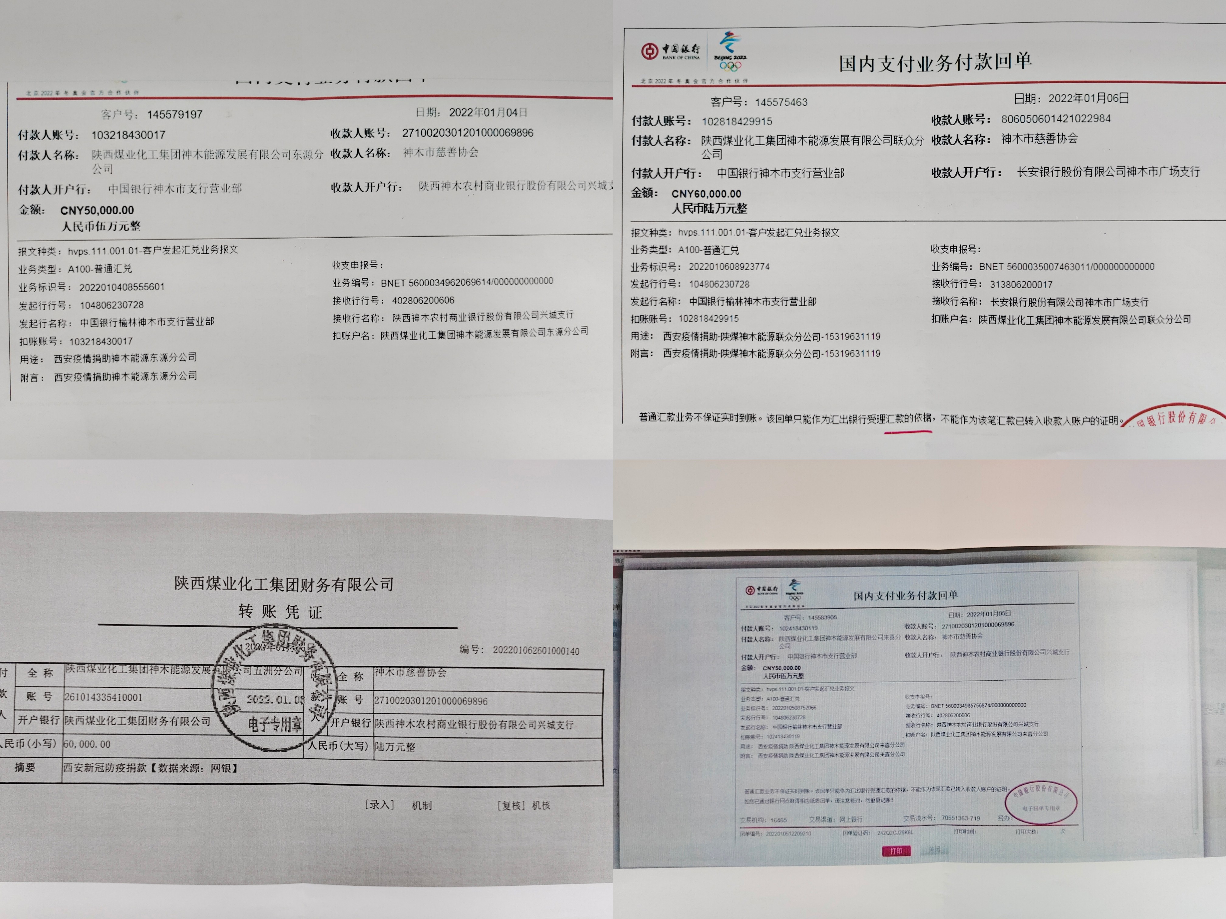 一方有難,八方支援,齊心協(xié)力,守望相助。1月4日至6日,神木煤化工能源公司積極聯(lián)系神木市慈善協(xié)會(huì)募捐平臺(tái),先后向西安疫情抗擊一線進(jìn)行4次捐款,累計(jì)捐資20余萬(wàn)元。