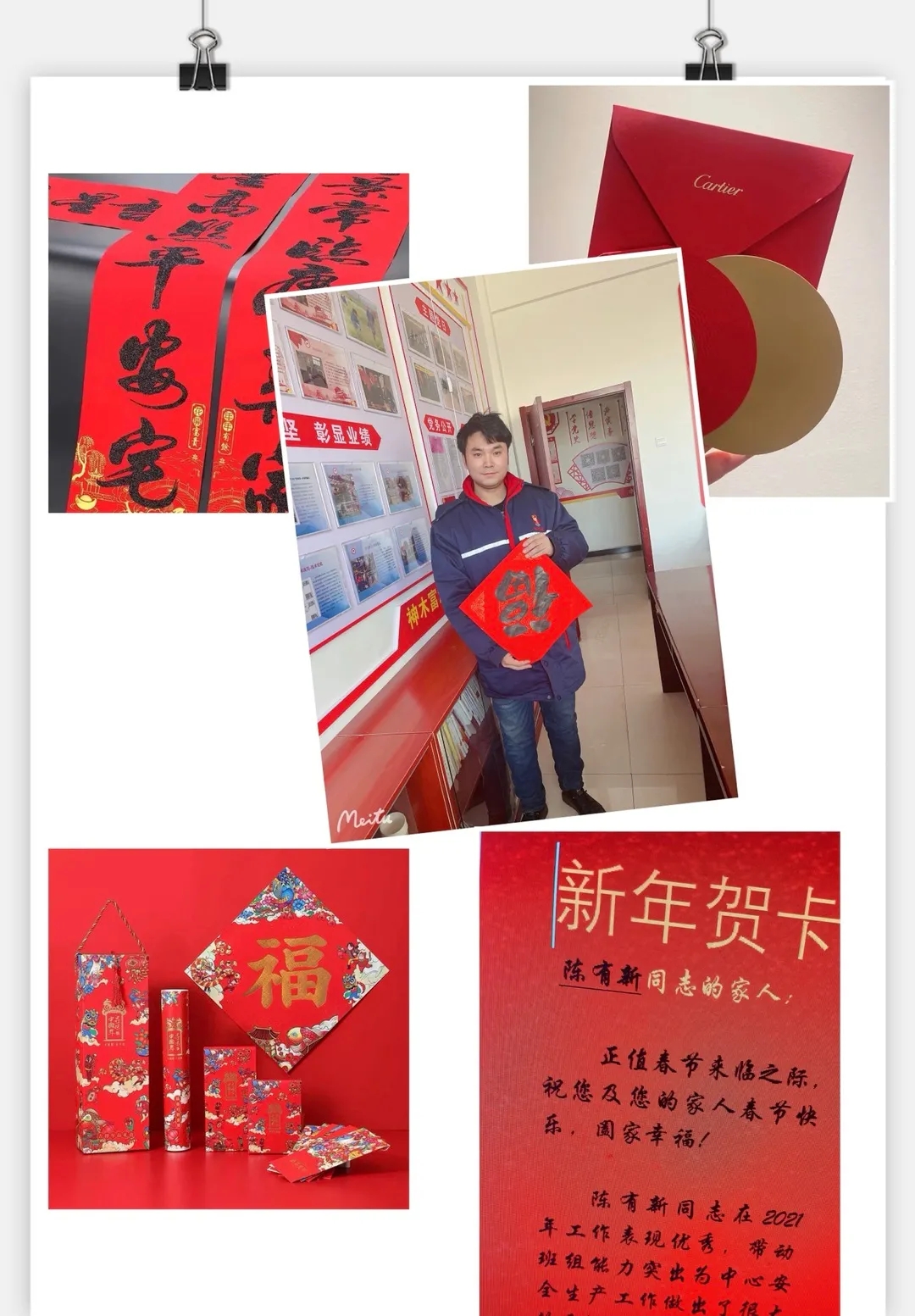 為了讓留守黨員和職工感到暖心、舒心,讓他們的親人感到安心、放心,支部專門為每個(gè)人精心制作一個(gè)愛心禮包。禮包內(nèi),既有新春對聯(lián),給家人帶去喜氣、福氣;又有新年祝福家書,祝福家人在新的一年里福氣滿滿、好運(yùn)連連;還有職工工作的照片,讓家人了解親人的工作環(huán)境和工作狀態(tài)。