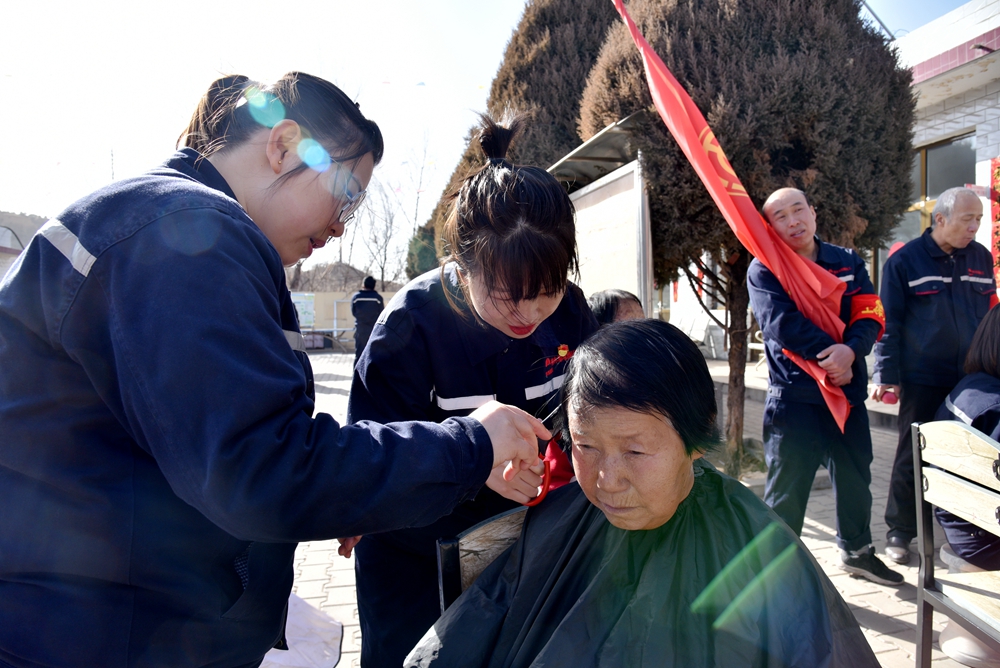 3月4日,神木煤化工泰和公司“學雷鋒愛心小組”聯動神木西溝街道辦和派出所人員,到三道河養老院,向老人們送去牛奶、水果等生活物資,為老人們理發、照相,并陪老人們拉家常。(鄧國濤 白露)
