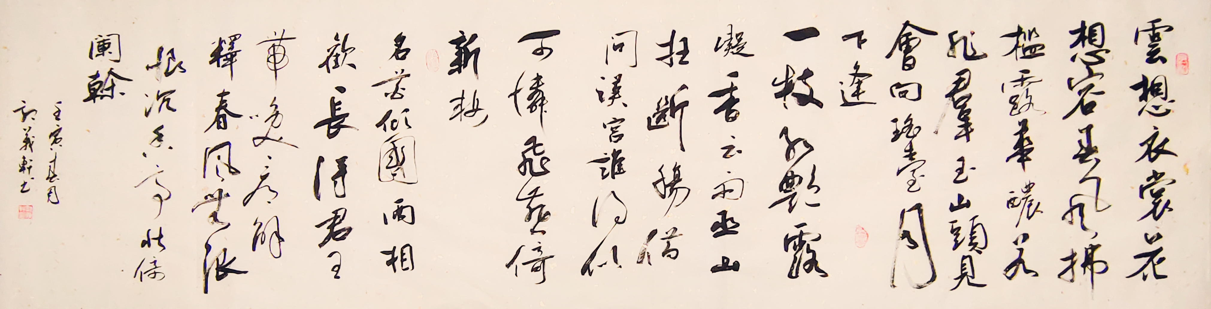 云想衣裳花想容,春風拂檻露華濃。