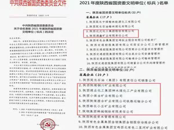 3月10日,從陜西省國資委獲悉,神木煤化工公司榮獲“2021年度陜西省國有企業文明單位”稱號。