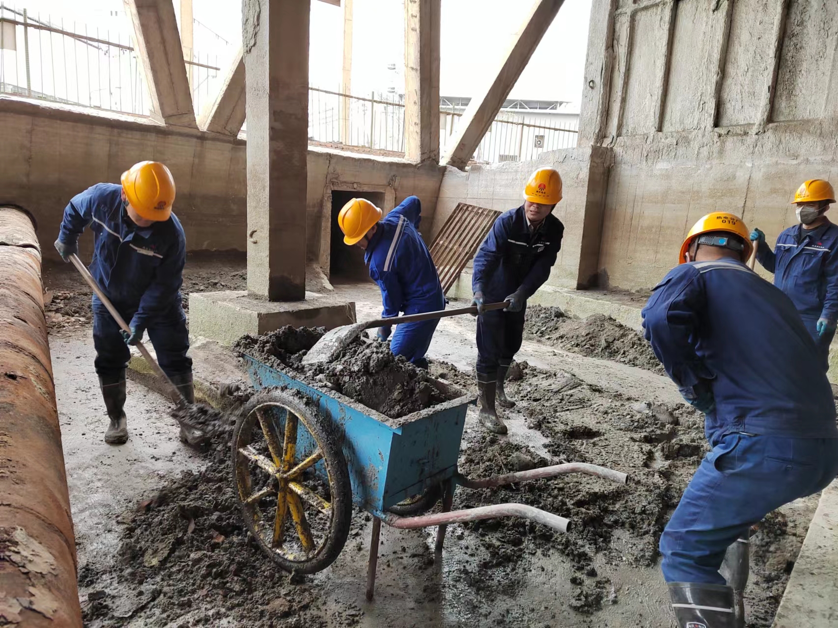 “鐵鍬、雨靴、推車咱們自己都有,大家利用休息時間自主完成淤泥清理工作,領導說了,完成任務給予大家一定酬勞。” 現場帶隊清淤的熱電汽機技術員高瑞給我們道出了這件“小事”的實施結果。