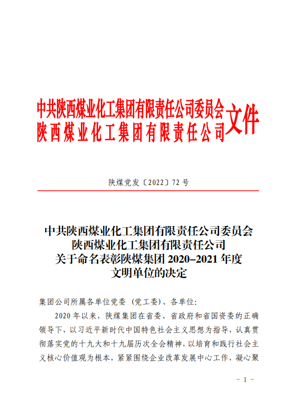 電化公司榮獲陜煤集團“文明單位”榮譽稱號